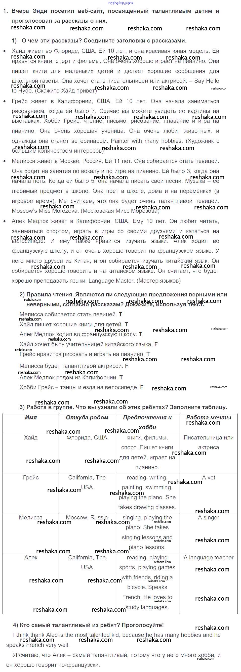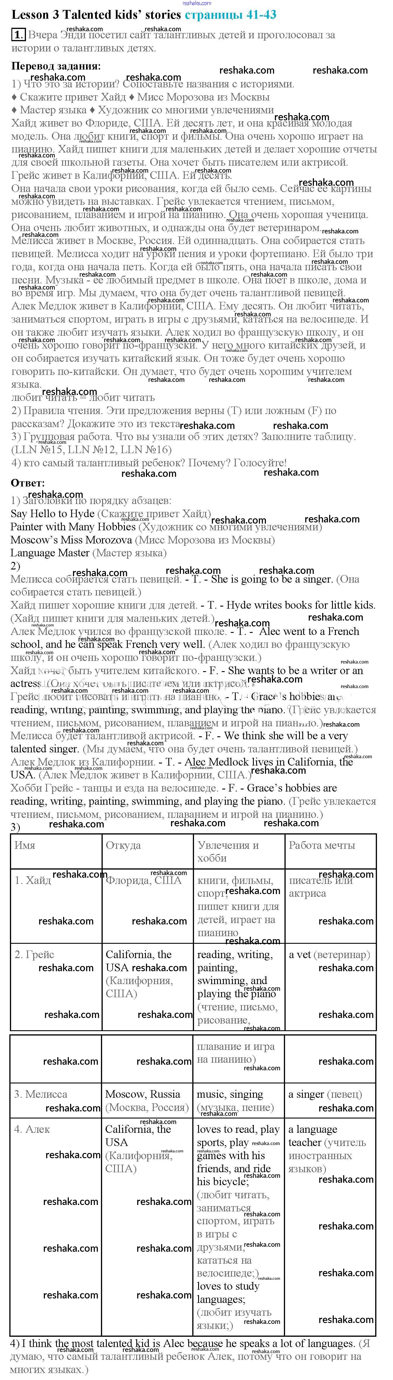 Представляем вам сборники по Английскому языку, с готовыми ответами к Учебнику Кузовлев школьной программы для учеников четвертый класса. Это не просто гдз с ответом, а с подсказками, как верно решить Lesson 3. Talented kids' stories Unit 7. My dream job 1. Проверяй домашку с умом и получай высший балл!