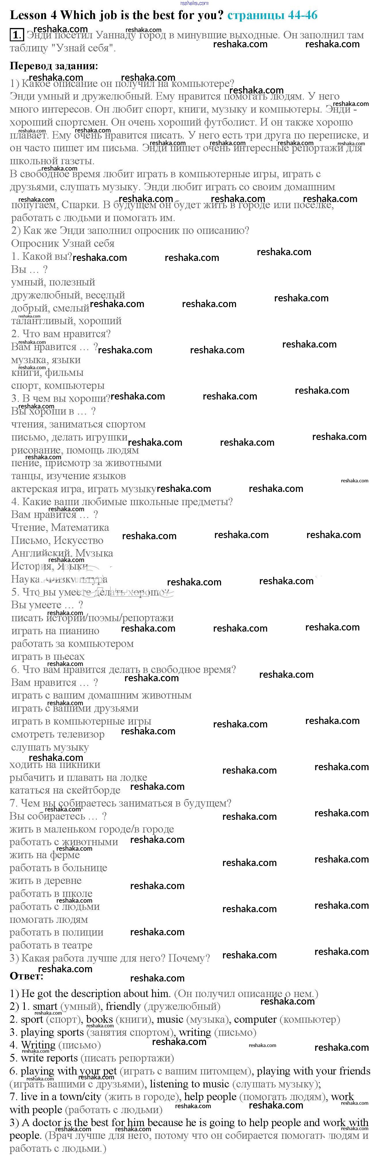 Решака - онлайн ответы Английский язык Кузовлев, Перегудова за 4 класс Учебник ФГОС 2015 - 1