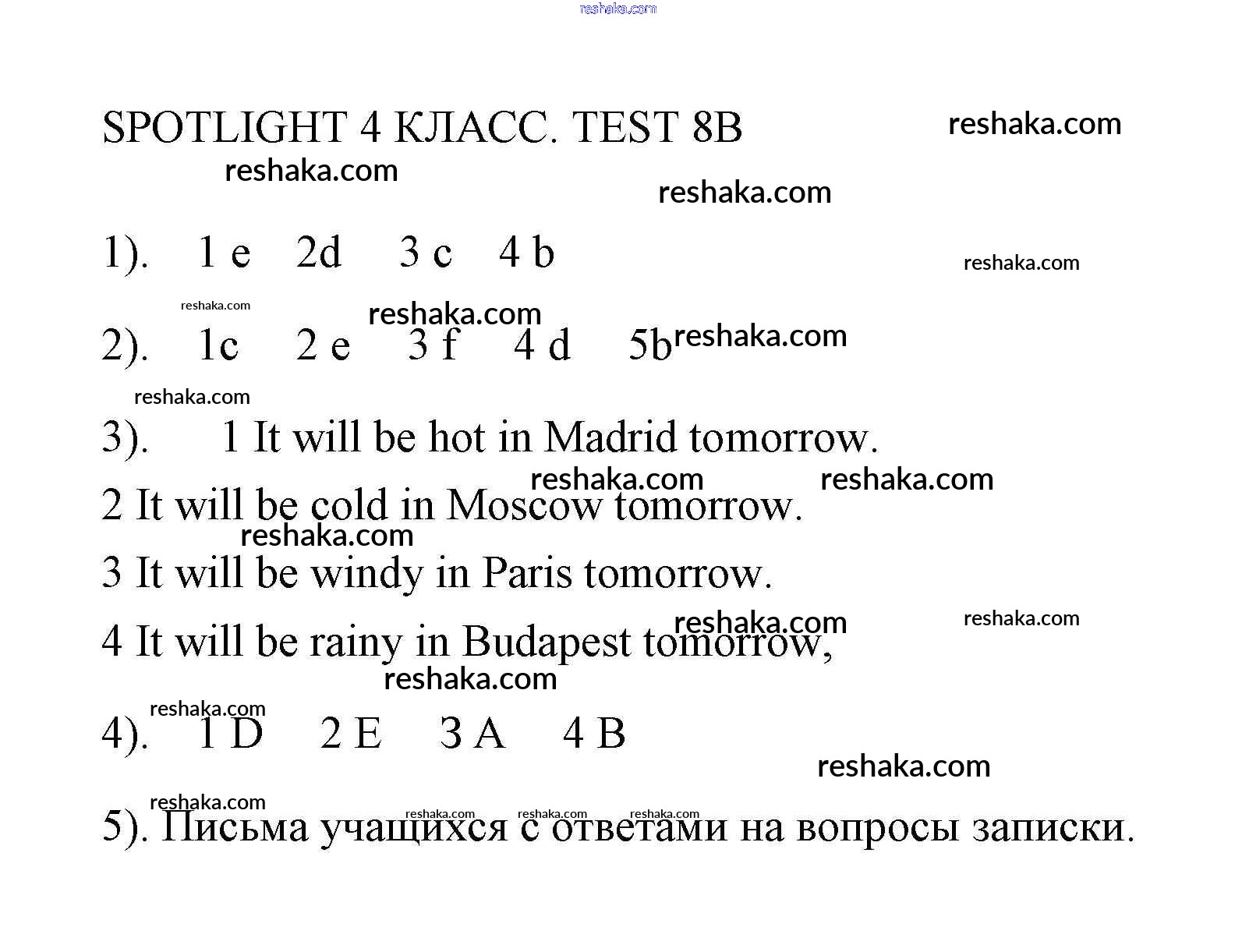 Решака - онлайн ответы Английский язык Быкова, Эванс за 4 класс Контрольные работы ФГОС 2018 - 8B