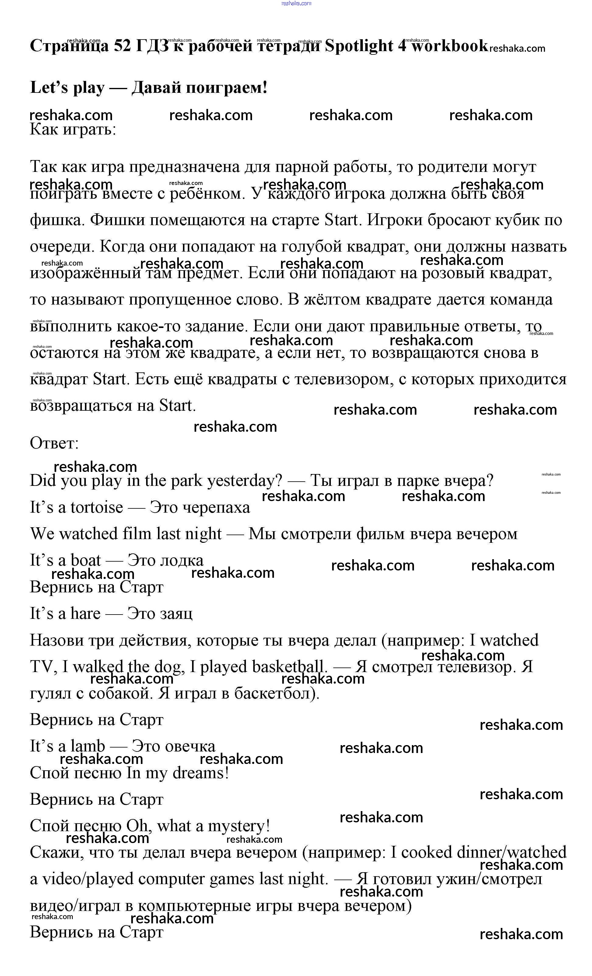 Решака - онлайн ответы Английский язык Быкова, Эванс за 4 класс Рабочая тетрадь ФГОС 2017 - страница 52