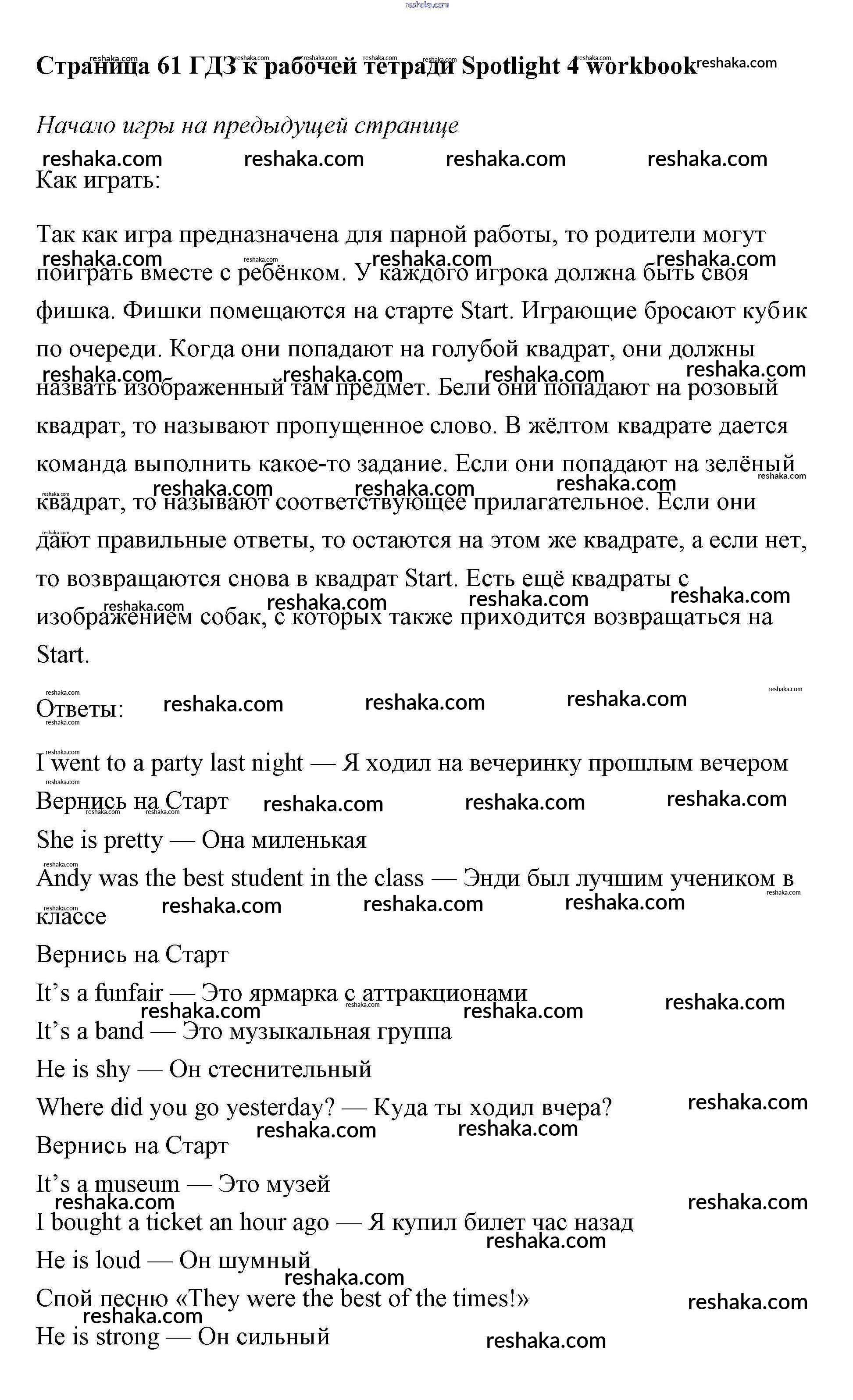 Решака - онлайн ответы Английский язык Быкова, Эванс за 4 класс Рабочая тетрадь ФГОС 2017 - страница 61