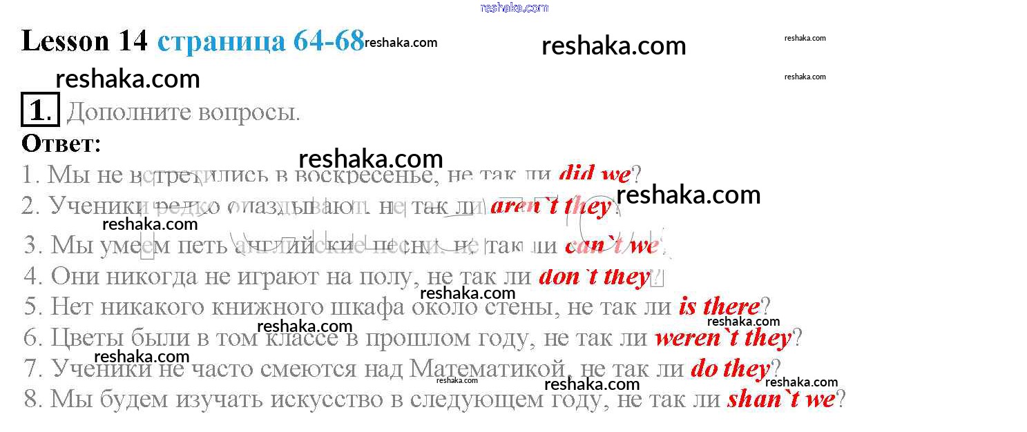 Представляем вам сборники по Английскому языку, с готовыми ответами к Учебнику Верещагина школьной программы для учеников четвертый класса. Это не просто гдз с ответом, а с подсказками, как верно решить Lesson 14 1. Проверяй домашку с умом и получай высший балл!