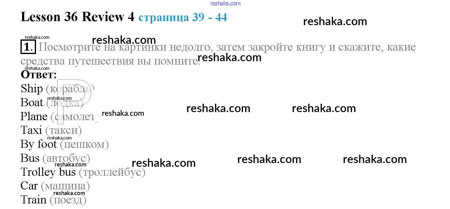 Представляем вам сборники по Английскому языку, с готовыми ответами к Учебнику Верещагина школьной программы для учеников четвертый класса. Это не просто гдз с ответом, а с подсказками, как верно решить Lesson 36. Review 4 1. Проверяй домашку с умом и получай высший балл!