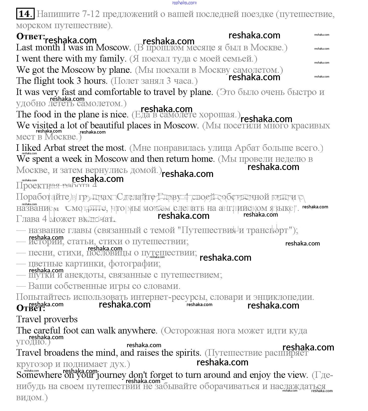 Решака - онлайн ответы Английский язык Верещагина, Афанасьева за 4 класс Учебник Углубленный уровень ФГОС 2015 - 14