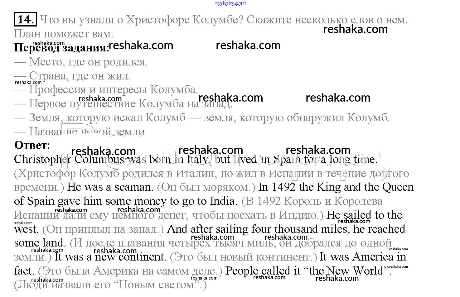 Решака - онлайн ответы Английский язык Верещагина, Афанасьева за 4 класс Учебник Углубленный уровень ФГОС 2015 - 14