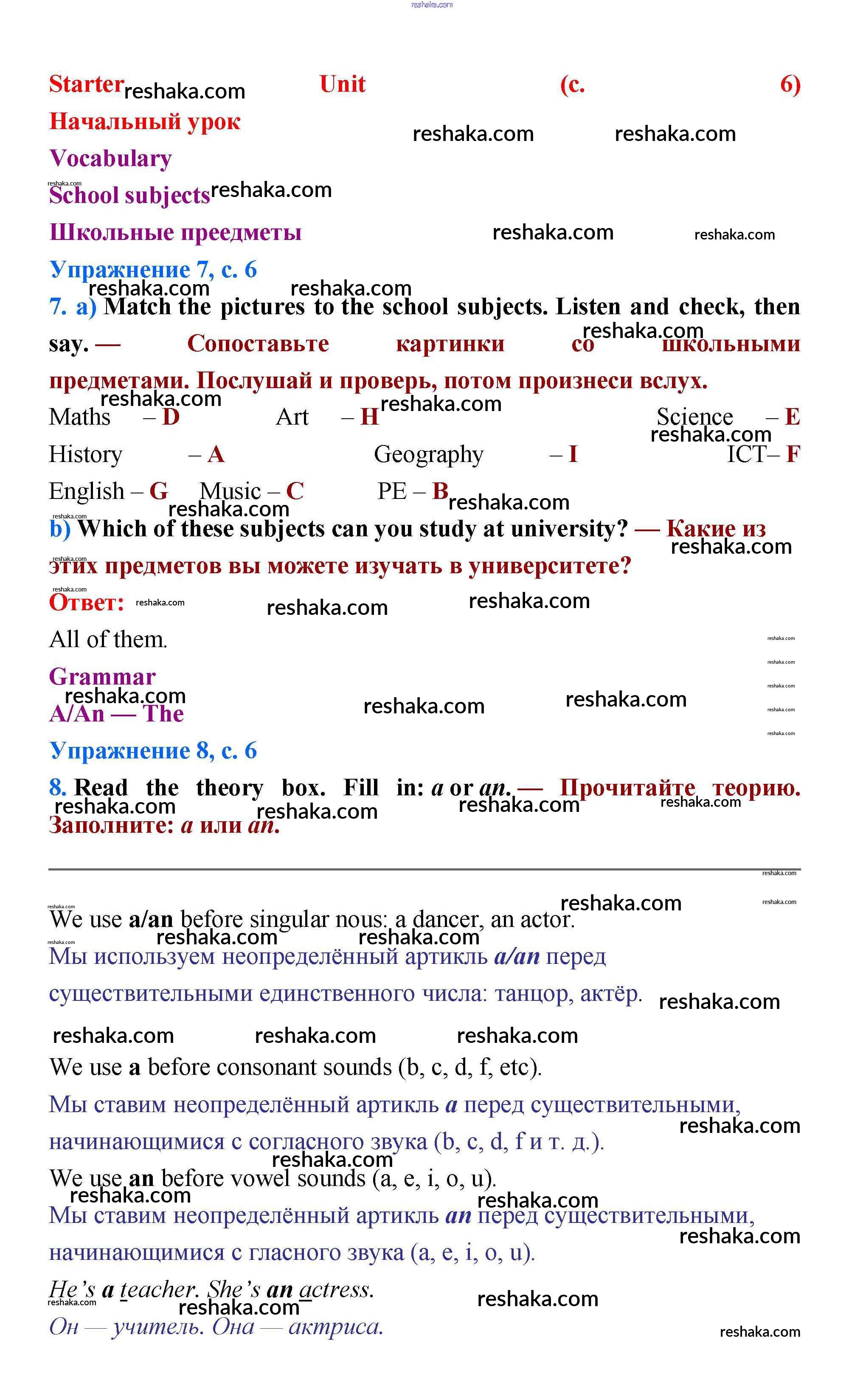 Представляем вам сборники по Английскому языку, с готовыми ответами к Учебнику Баранова школьной программы для учеников пятый класса. Это не просто гдз с ответом, а с подсказками, как верно решить Starter unit стр.6. Проверяй домашку с умом и получай высший балл!
