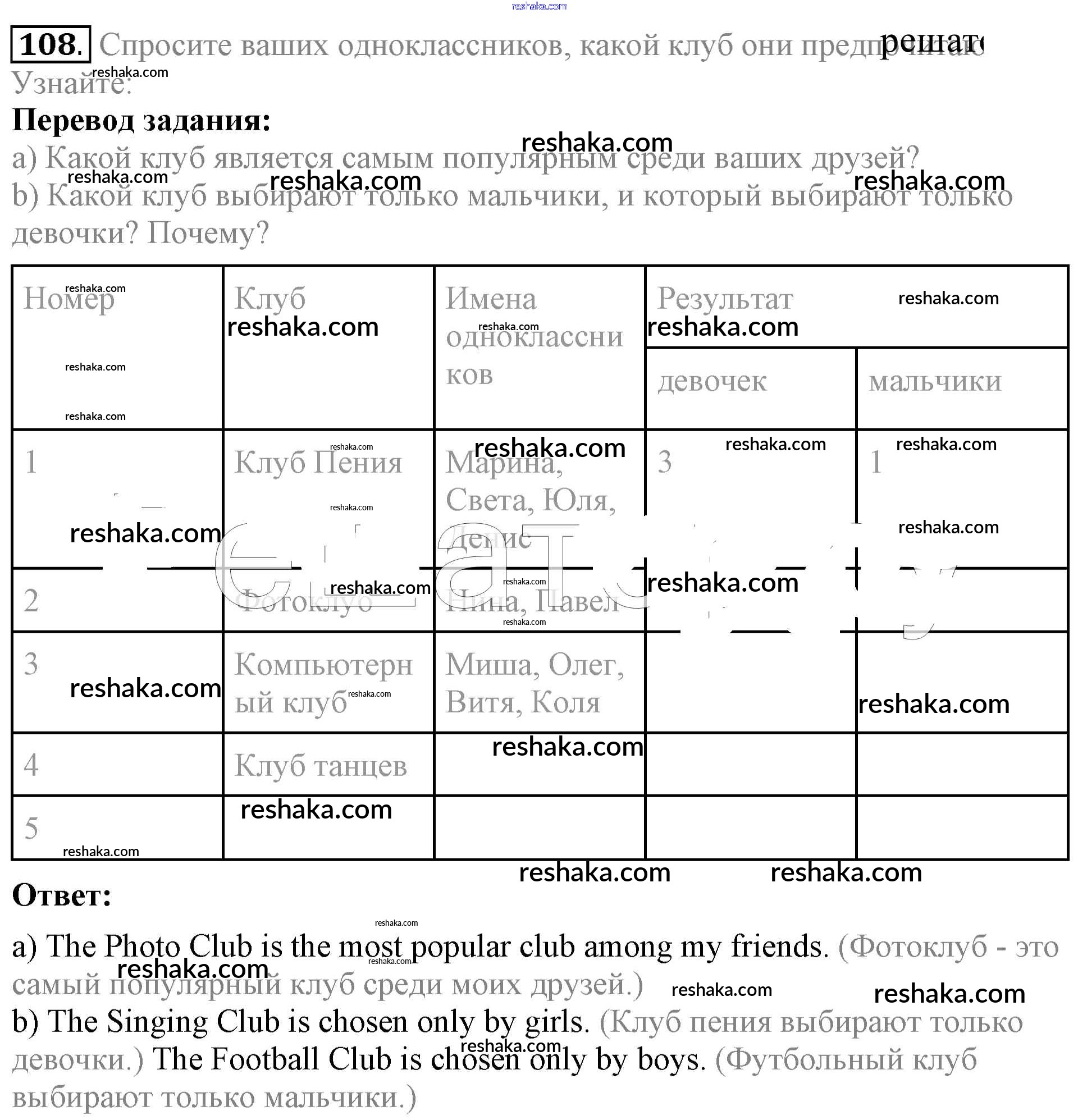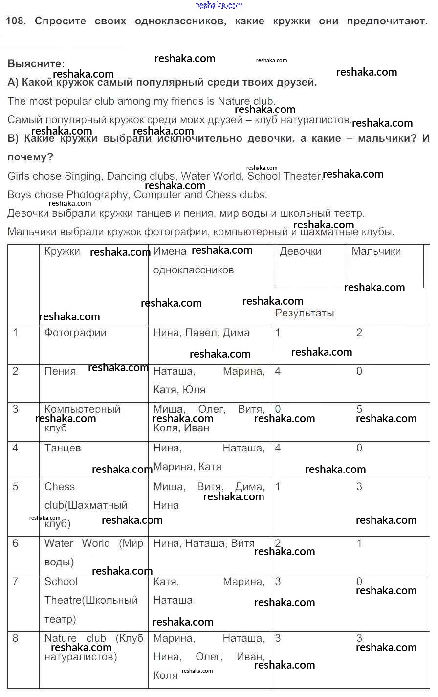 Решака - онлайн ответы Английский язык Биболетова, Денисенко за 5 класс Учебник ФГОС 2015 - 108