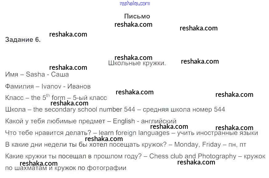 Решака - онлайн ответы Английский язык Биболетова, Денисенко за 5 класс Учебник ФГОС 2015 - 6