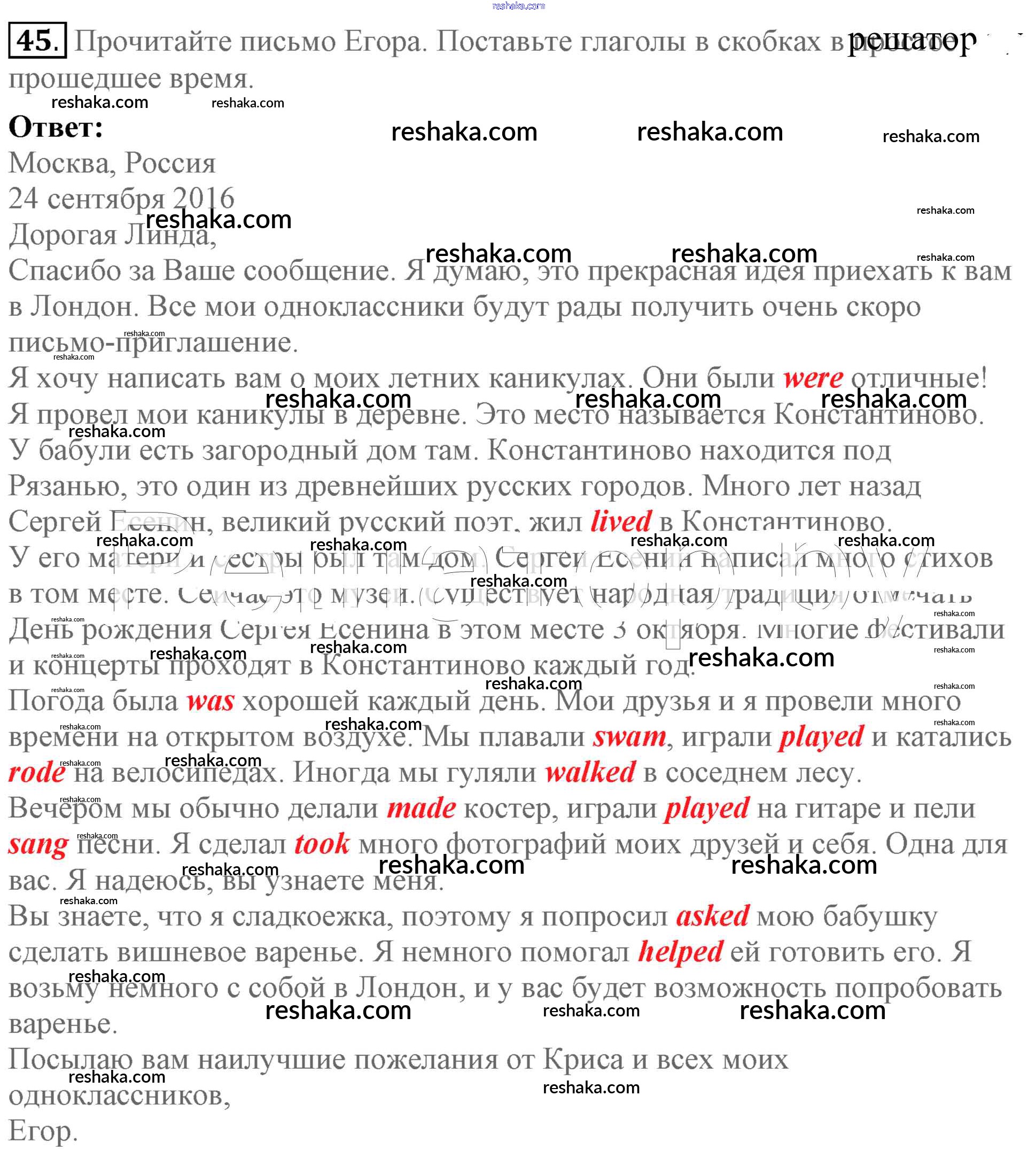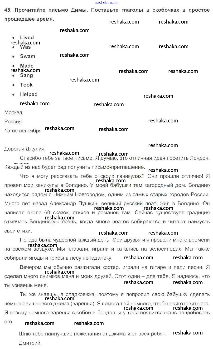 Решака - онлайн ответы Английский язык Биболетова, Денисенко за 5 класс Учебник ФГОС 2015 - 45