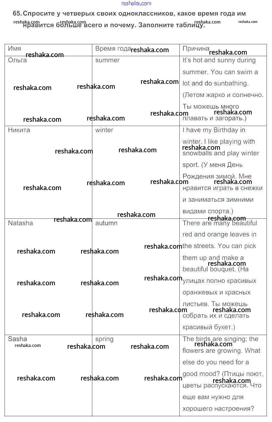 Решака - онлайн ответы Английский язык Биболетова, Денисенко за 5 класс Учебник ФГОС 2015 - 65