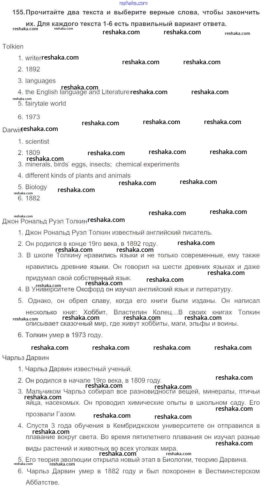 Решака - онлайн ответы Английский язык Биболетова, Денисенко за 5 класс Учебник ФГОС 2015 - 155