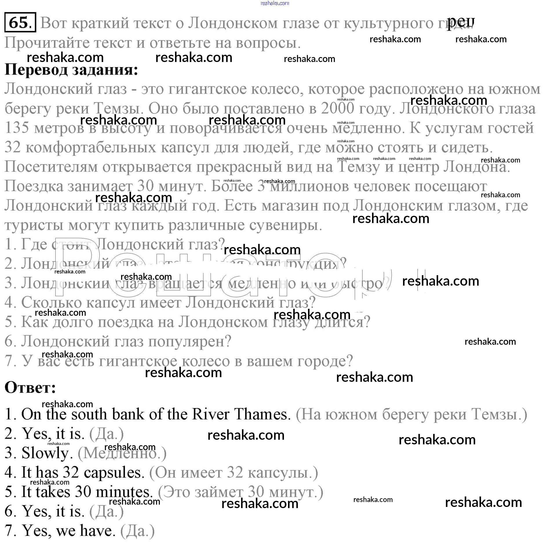 Решака - онлайн ответы Английский язык Биболетова, Денисенко за 5 класс Учебник ФГОС 2015 - 65