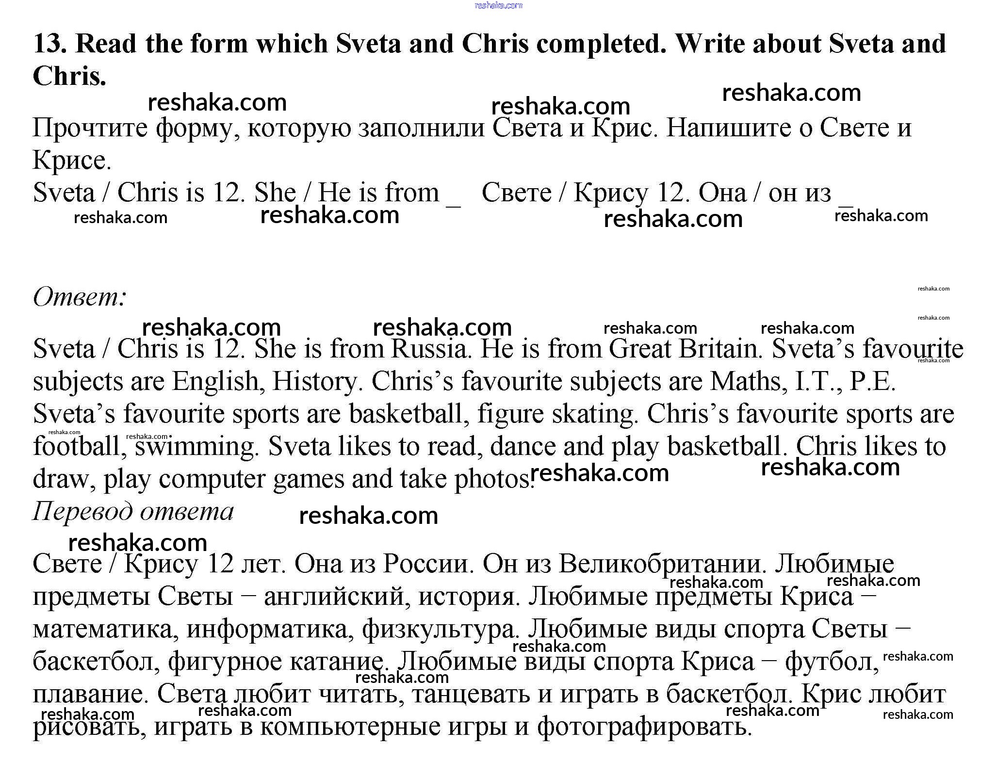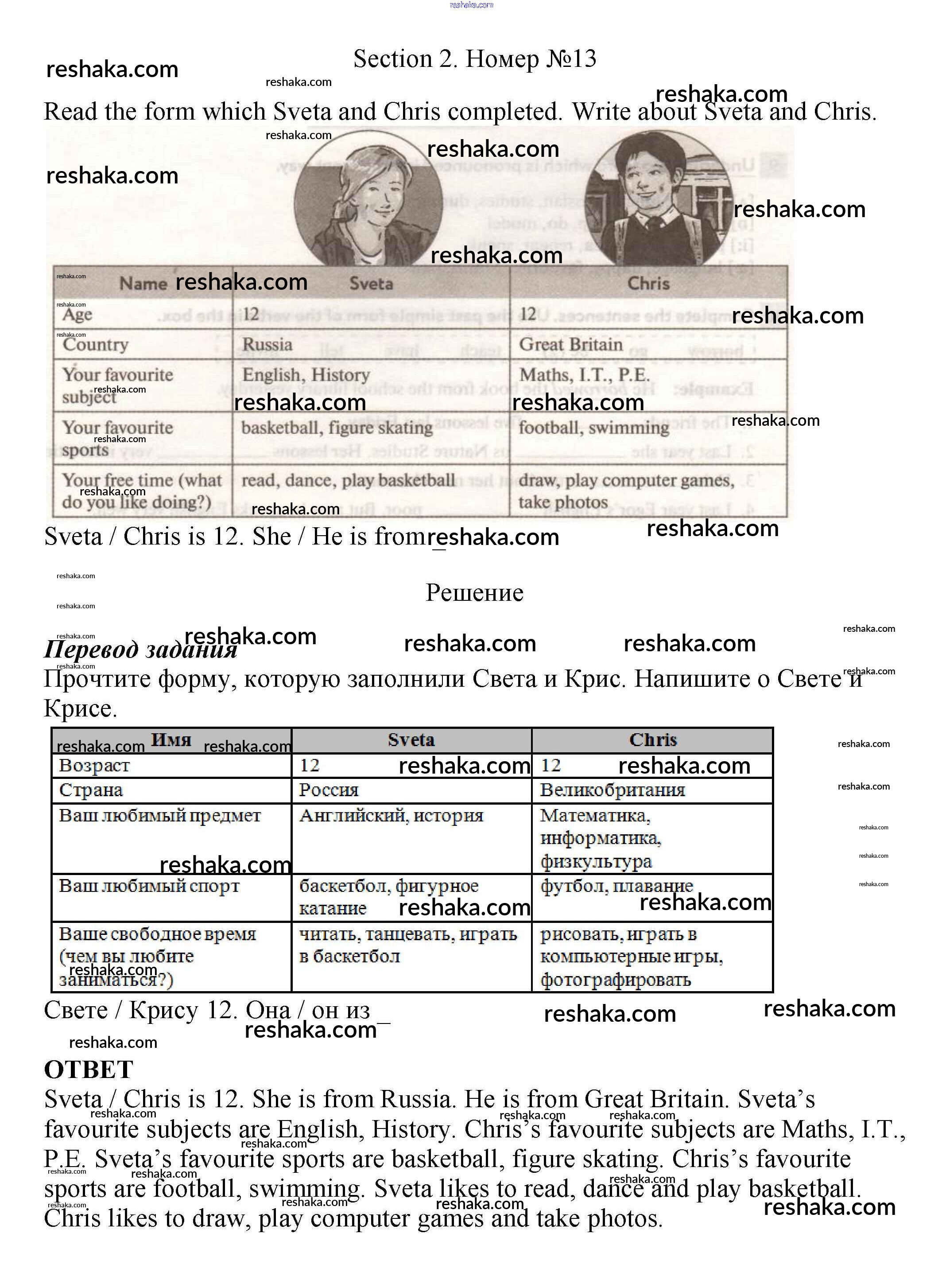 Решака - онлайн ответы Английский язык Биболетова, Денисенко за 5 класс Рабочая тетрадь ФГОС 2019 - 13