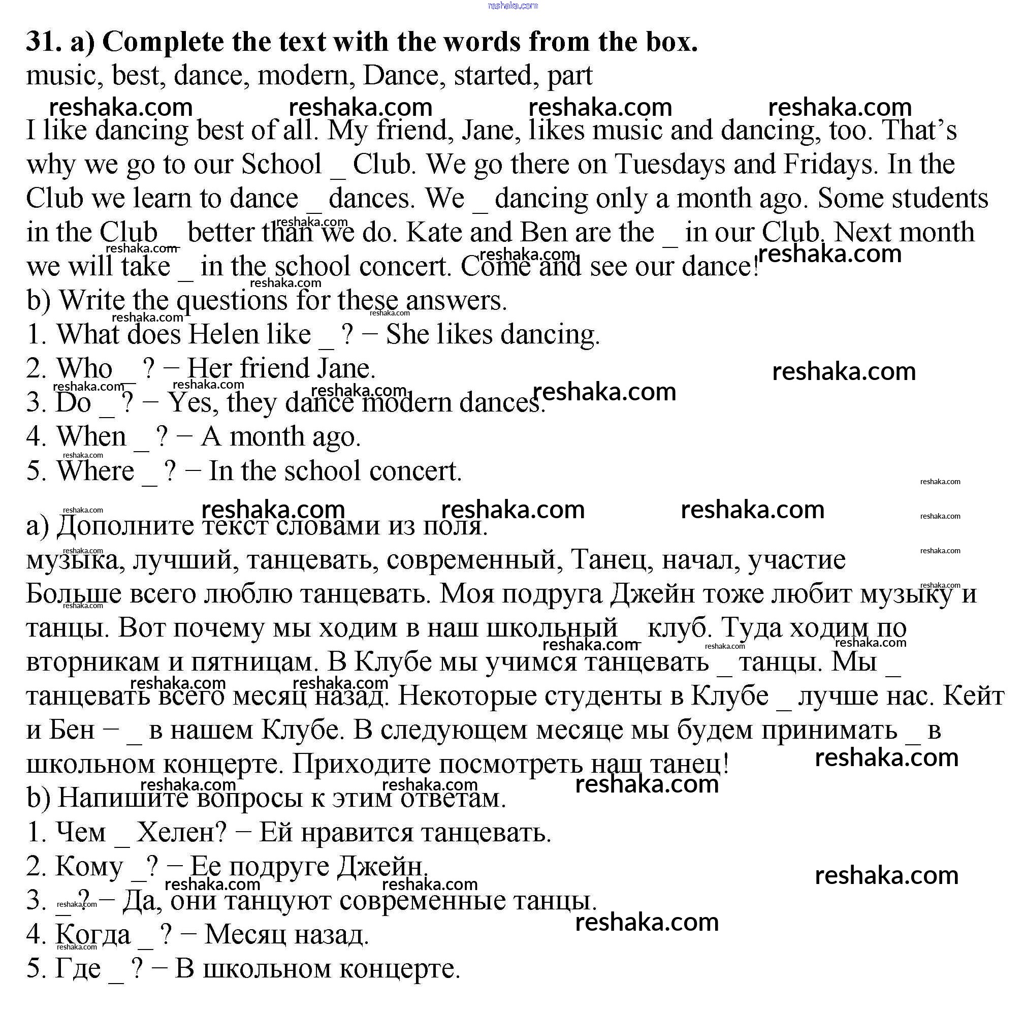 Решака - онлайн ответы Английский язык Биболетова, Денисенко за 5 класс Рабочая тетрадь ФГОС 2019 - 31