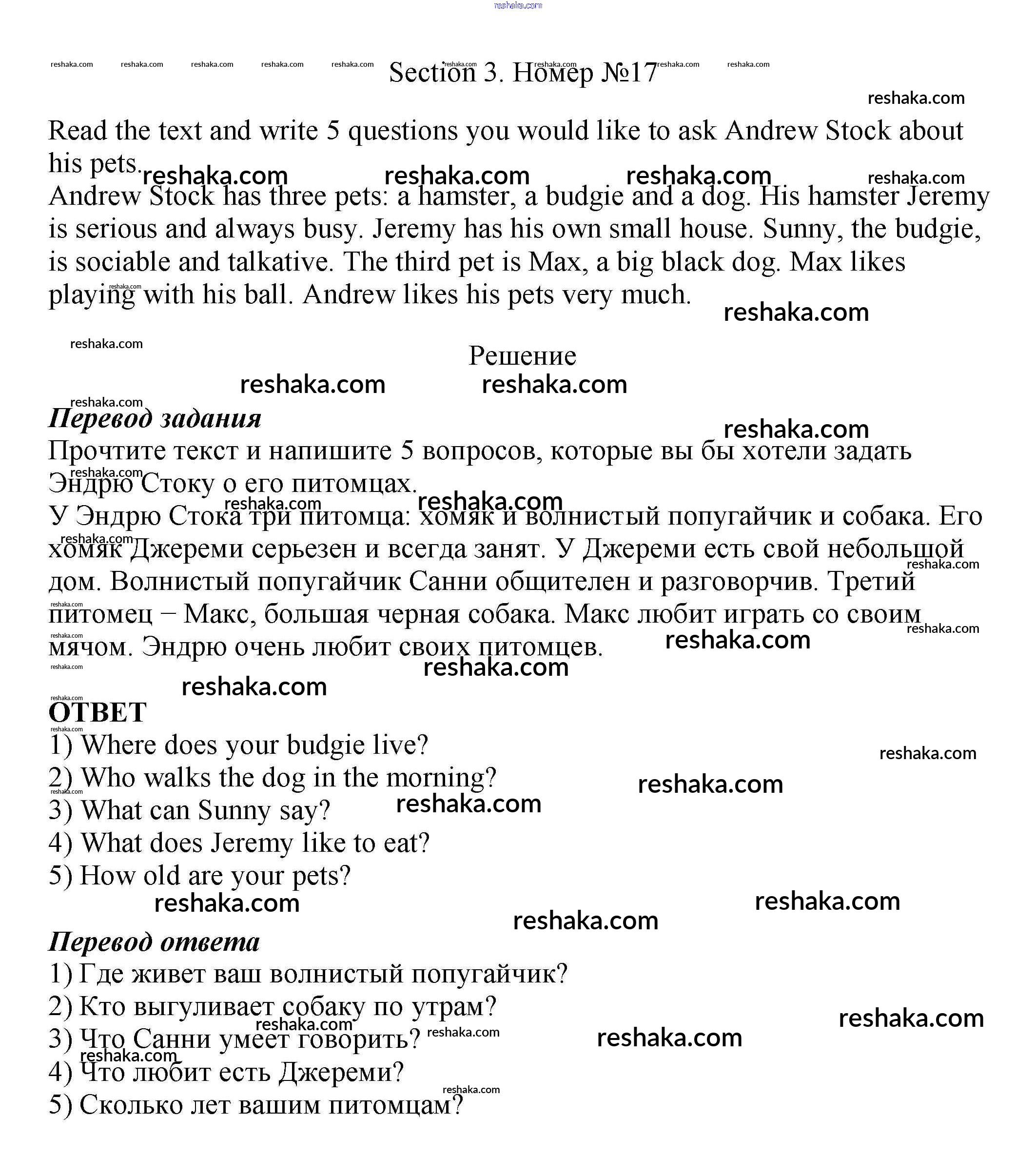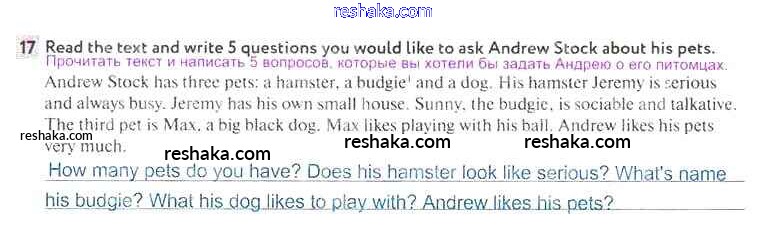 Решака - онлайн ответы Английский язык Биболетова, Денисенко за 5 класс Рабочая тетрадь ФГОС 2019 - 17