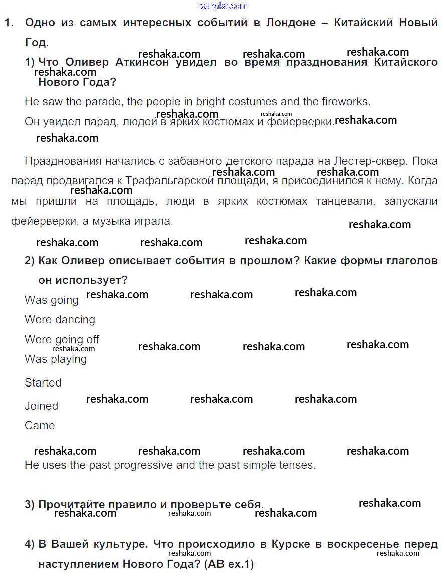 Представляем вам сборники по Английскому языку, с готовыми ответами к Учебнику Кузовлев школьной программы для учеников пятый класса. Это не просто гдз с ответом, а с подсказками, как верно решить Lesson 4. While we were celebrating… Unit 5. My favourite celebrations 1. Проверяй домашку с умом и получай высший балл!