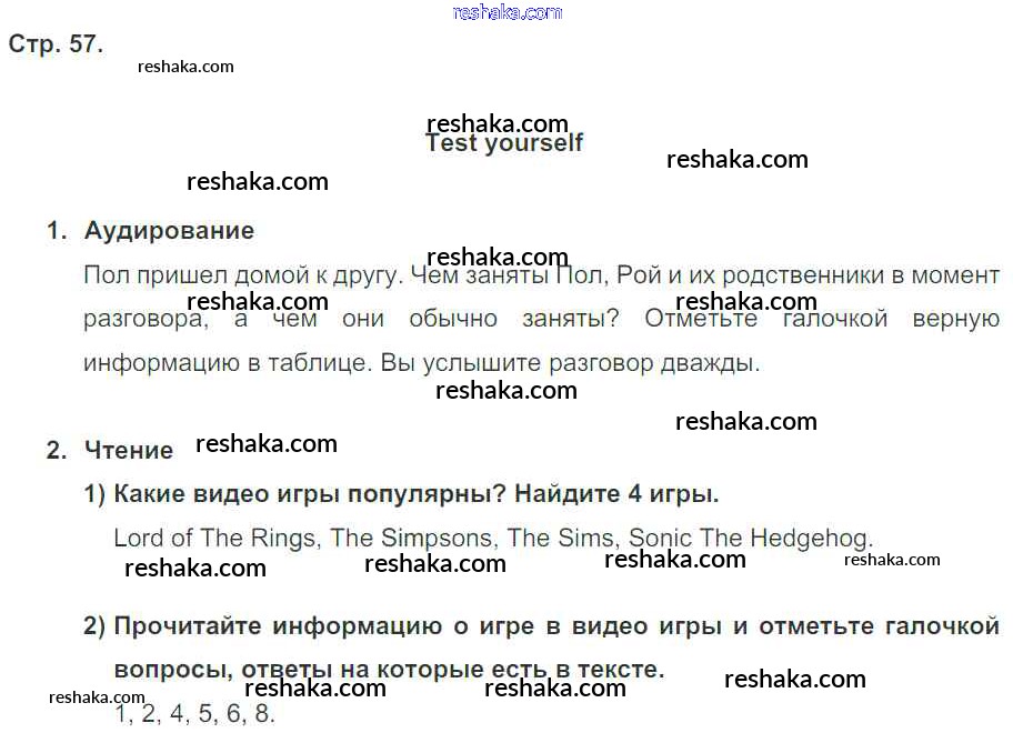 Решака - онлайн ответы Английский язык Кузовлев, Лапа за 5 класс Рабочая тетрадь ФГОС 2013 - стр. 57