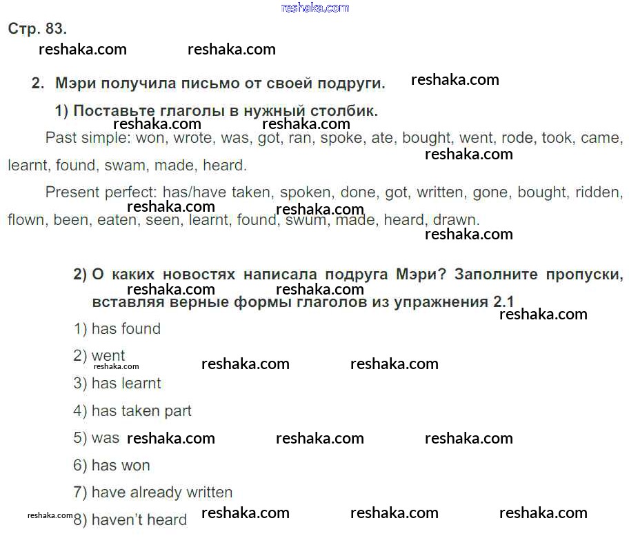 Решака - онлайн ответы Английский язык Кузовлев, Лапа за 5 класс Рабочая тетрадь ФГОС 2013 - стр. 83