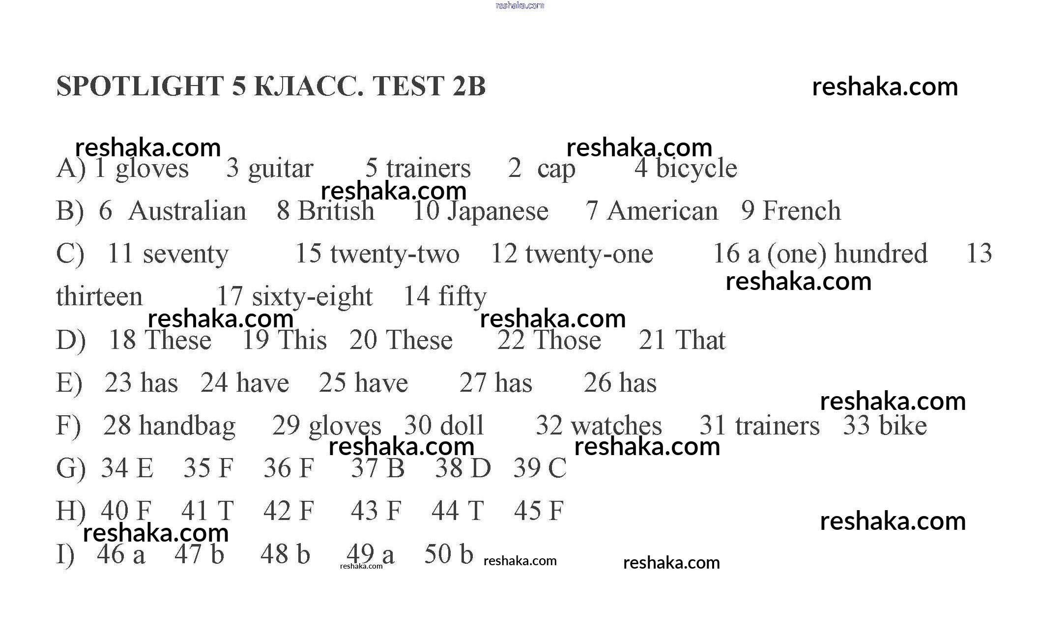 Решака - онлайн ответы Английский язык Ваулина, Дули за 5 класс Контрольные задания 2008 - B