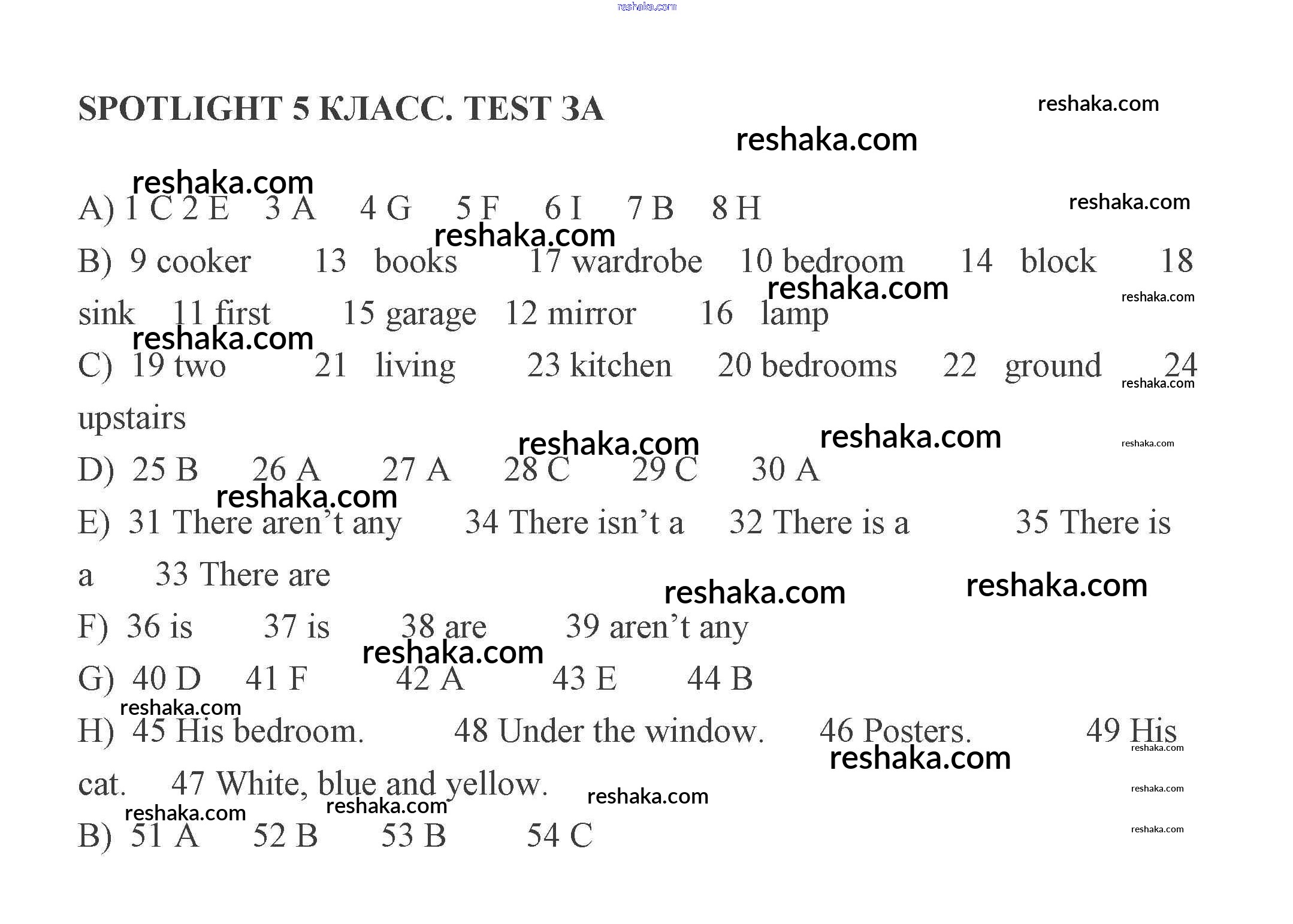 Решака - онлайн ответы Английский язык Ваулина, Дули за 5 класс Контрольные задания 2008 - A