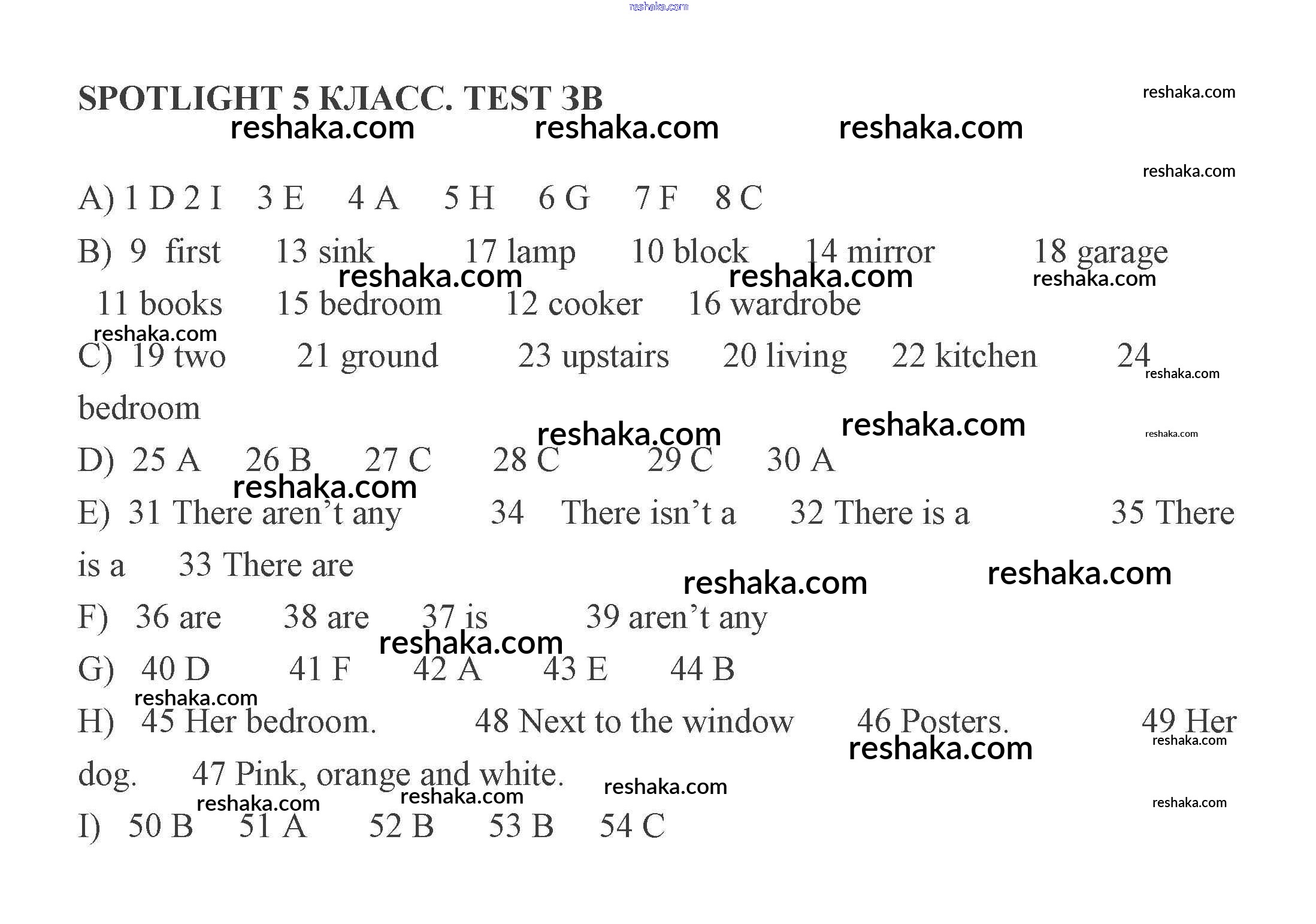 Решака - онлайн ответы Английский язык Ваулина, Дули за 5 класс Контрольные задания 2008 - B