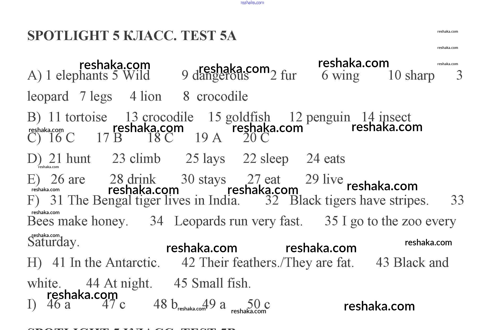 Решака - онлайн ответы Английский язык Ваулина, Дули за 5 класс Контрольные задания 2008 - A