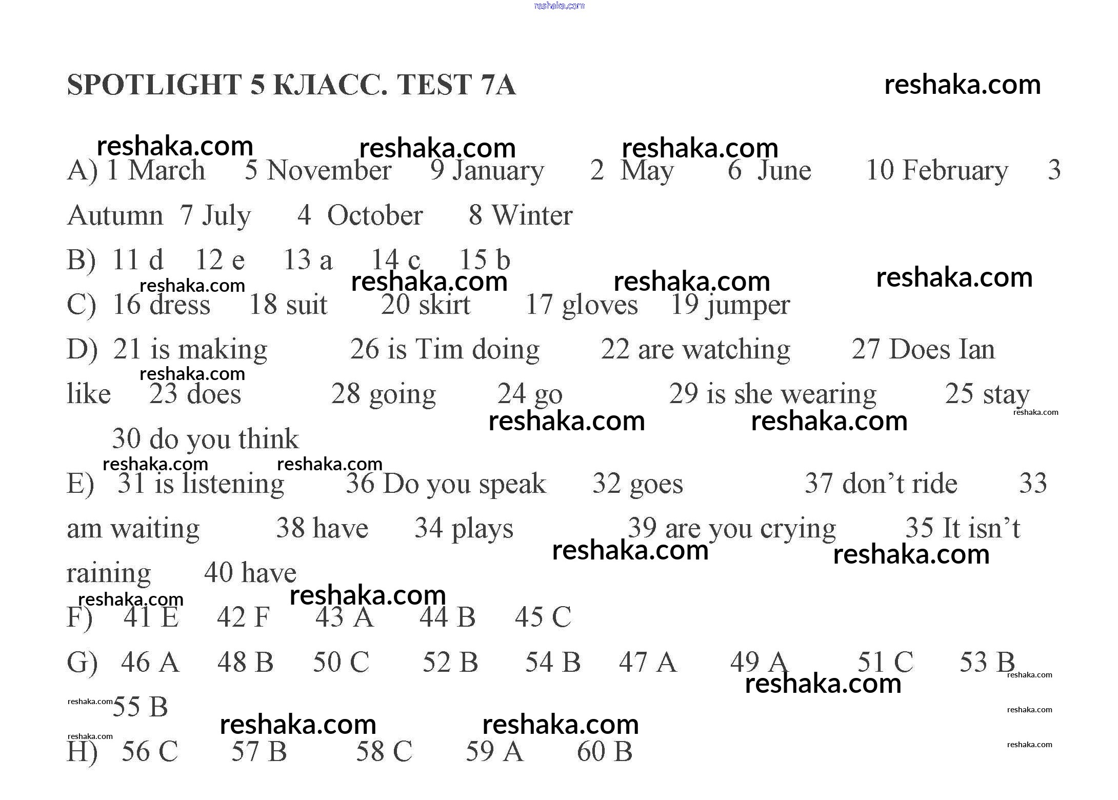 Решака - онлайн ответы Английский язык Ваулина, Дули за 5 класс Контрольные задания 2008 - A