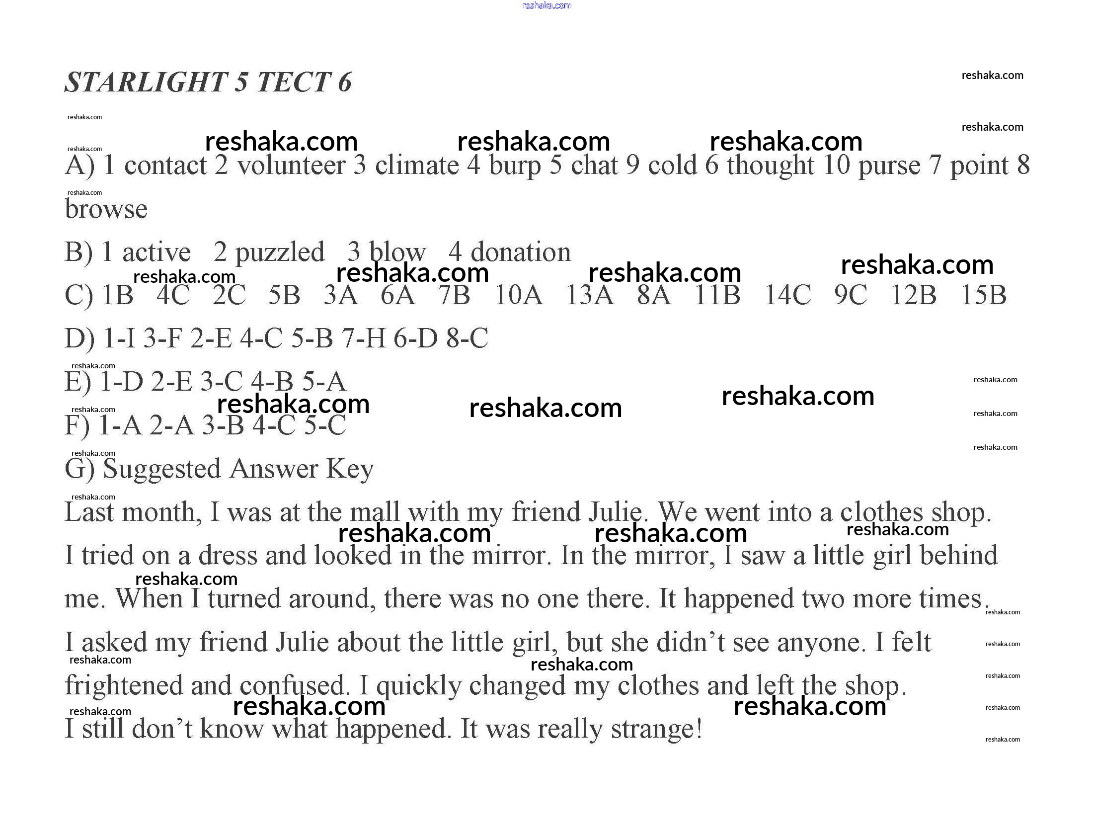 Решака - онлайн ответы Английский язык Баранова, Дули за 5 класс Контрольные задания Углубленный уровень 2017 - 6