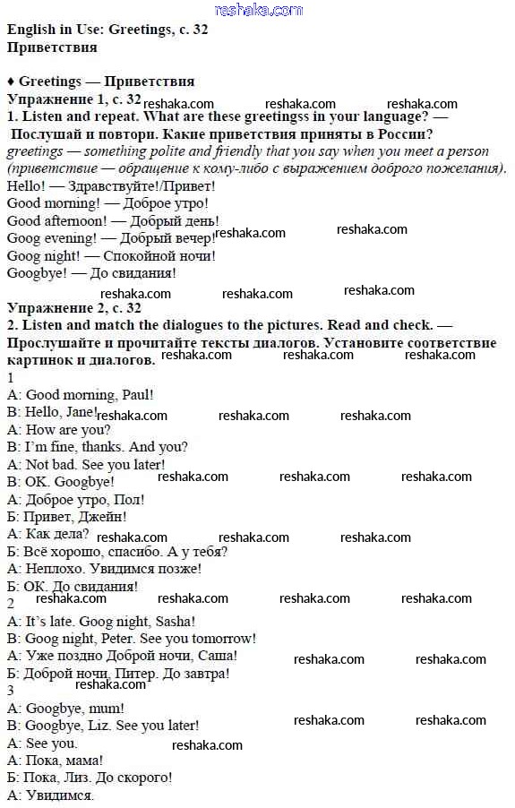 Решака - онлайн ответы Английский язык Ваулина, Дули за 5 класс Учебник ФГОС 2015 - стр. 32