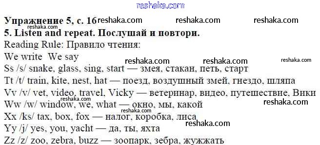 Решака - онлайн ответы Английский язык Ваулина, Дули за 5 класс Учебник ФГОС 2015 - стр. 16