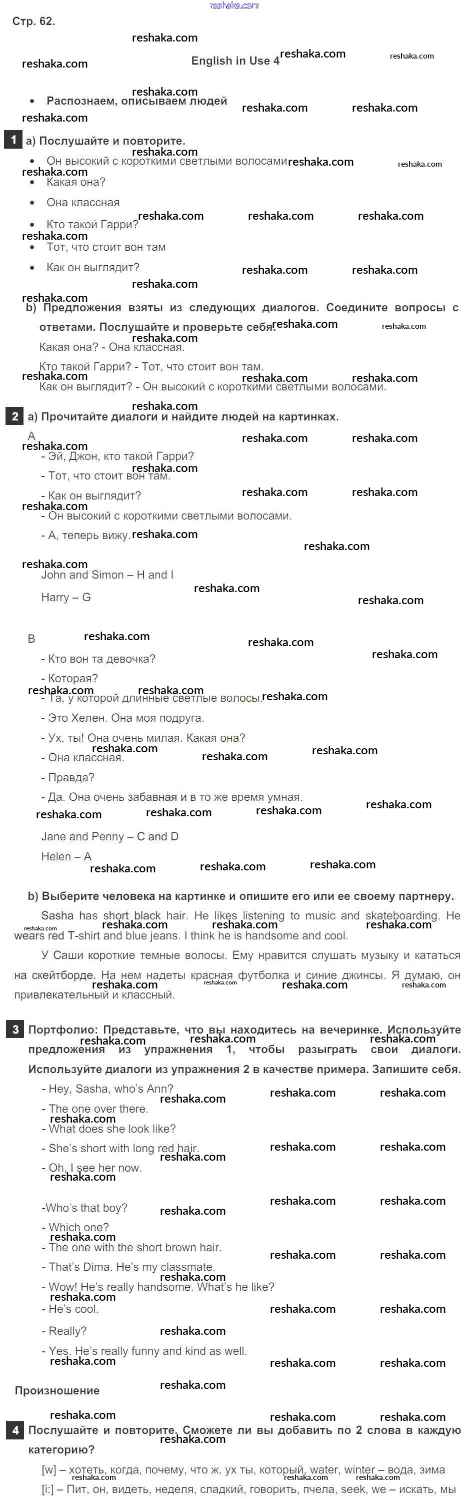 Решака - онлайн ответы Английский язык Ваулина, Дули за 5 класс Учебник ФГОС 2015 - стр. 62