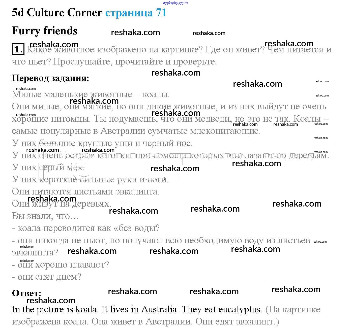 Решака - онлайн ответы Английский язык Ваулина, Дули за 5 класс Учебник ФГОС 2015 - стр. 71