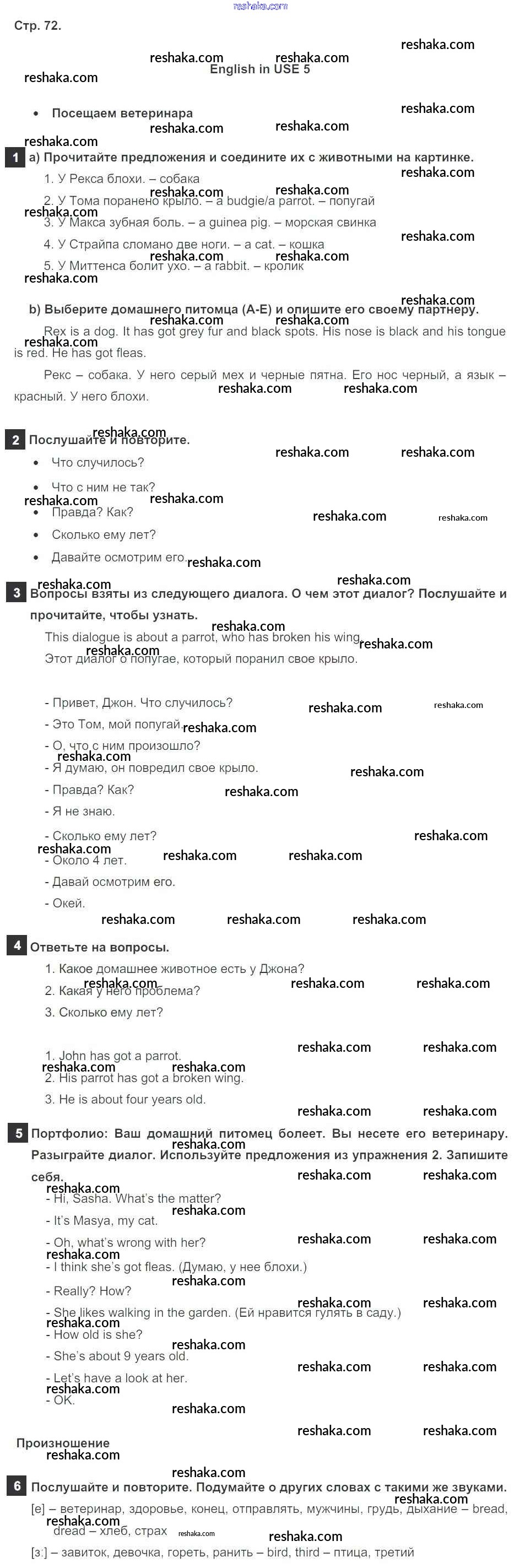 Решака - онлайн ответы Английский язык Ваулина, Дули за 5 класс Учебник ФГОС 2015 - стр. 72