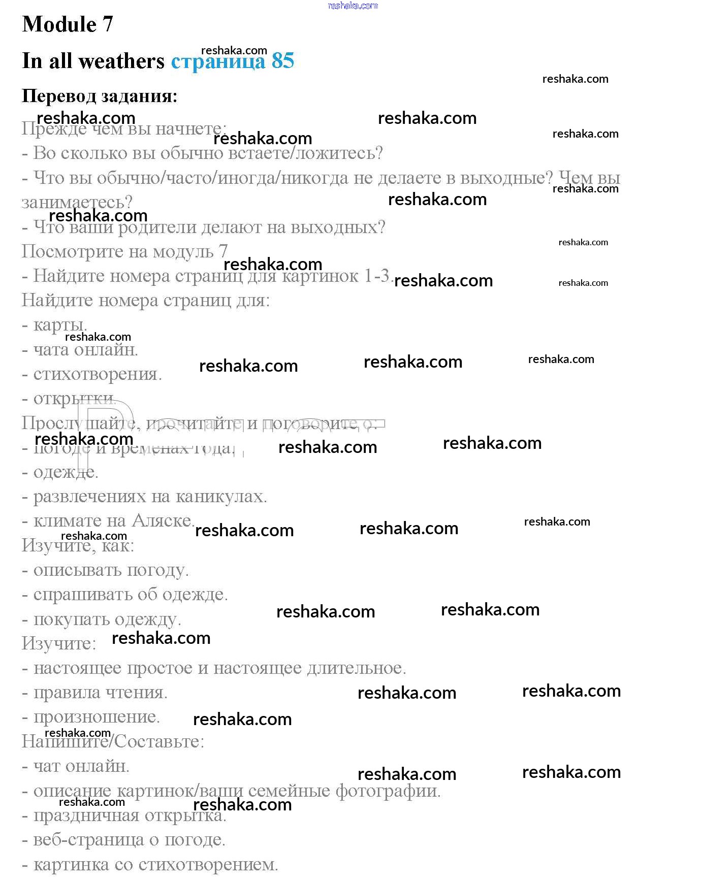 Решака - онлайн ответы Английский язык Ваулина, Дули за 5 класс Учебник ФГОС 2015 - стр. 85