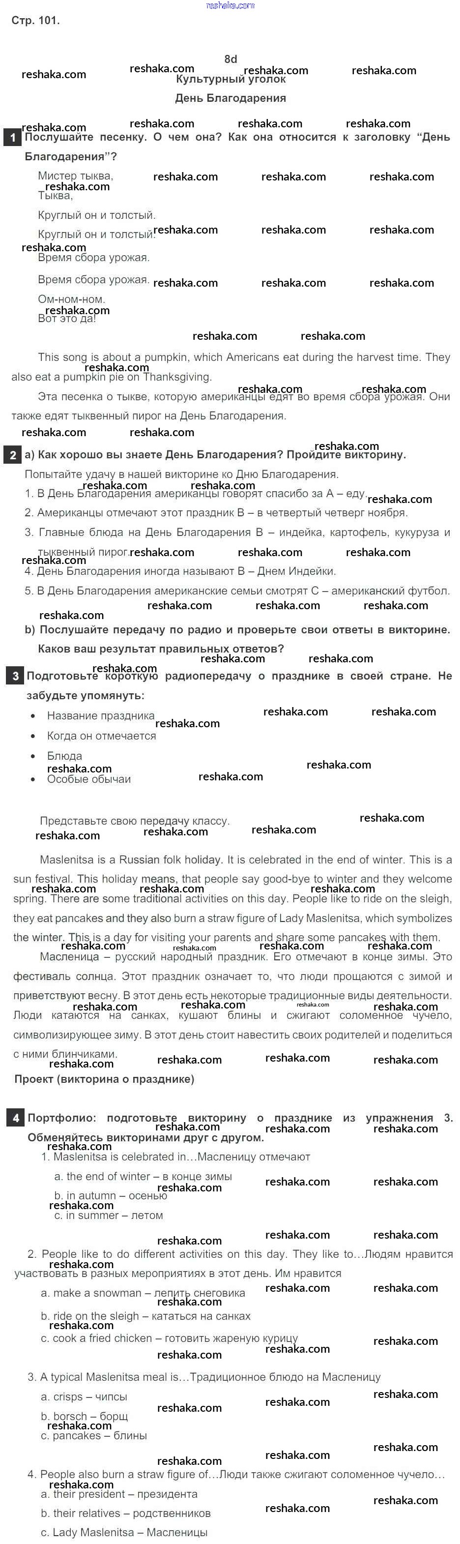 Решака - онлайн ответы Английский язык Ваулина, Дули за 5 класс Учебник ФГОС 2015 - стр. 101