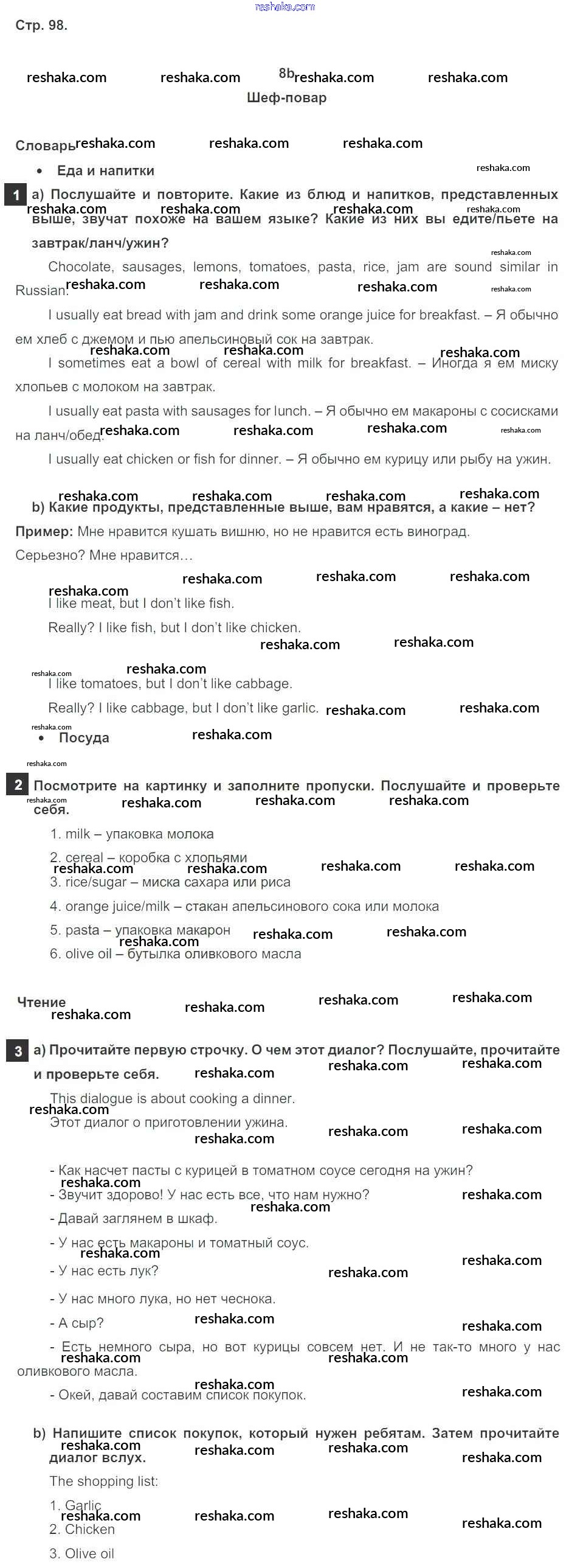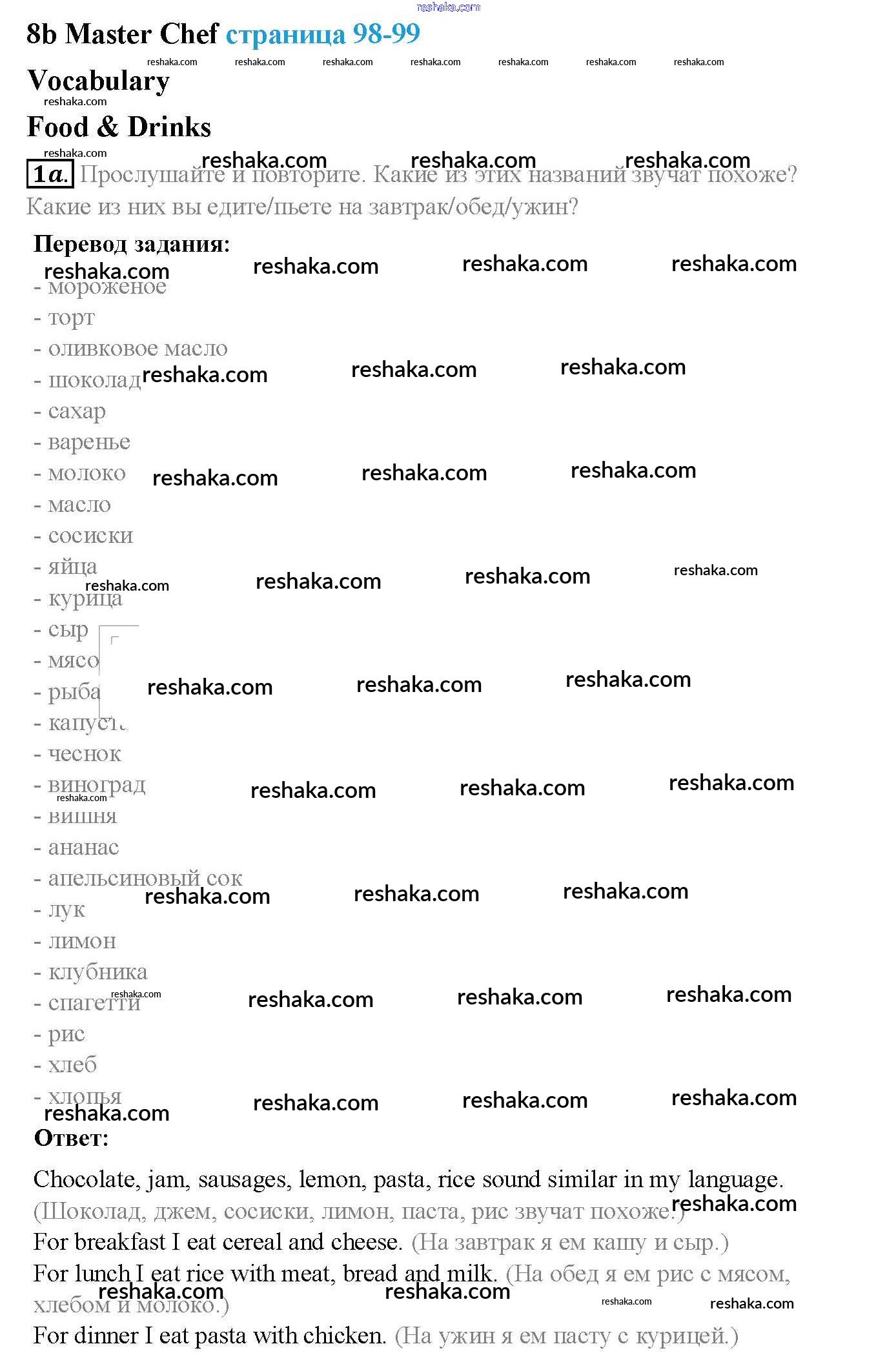 Решака - онлайн ответы Английский язык Ваулина, Дули за 5 класс Учебник ФГОС 2015 - стр. 98