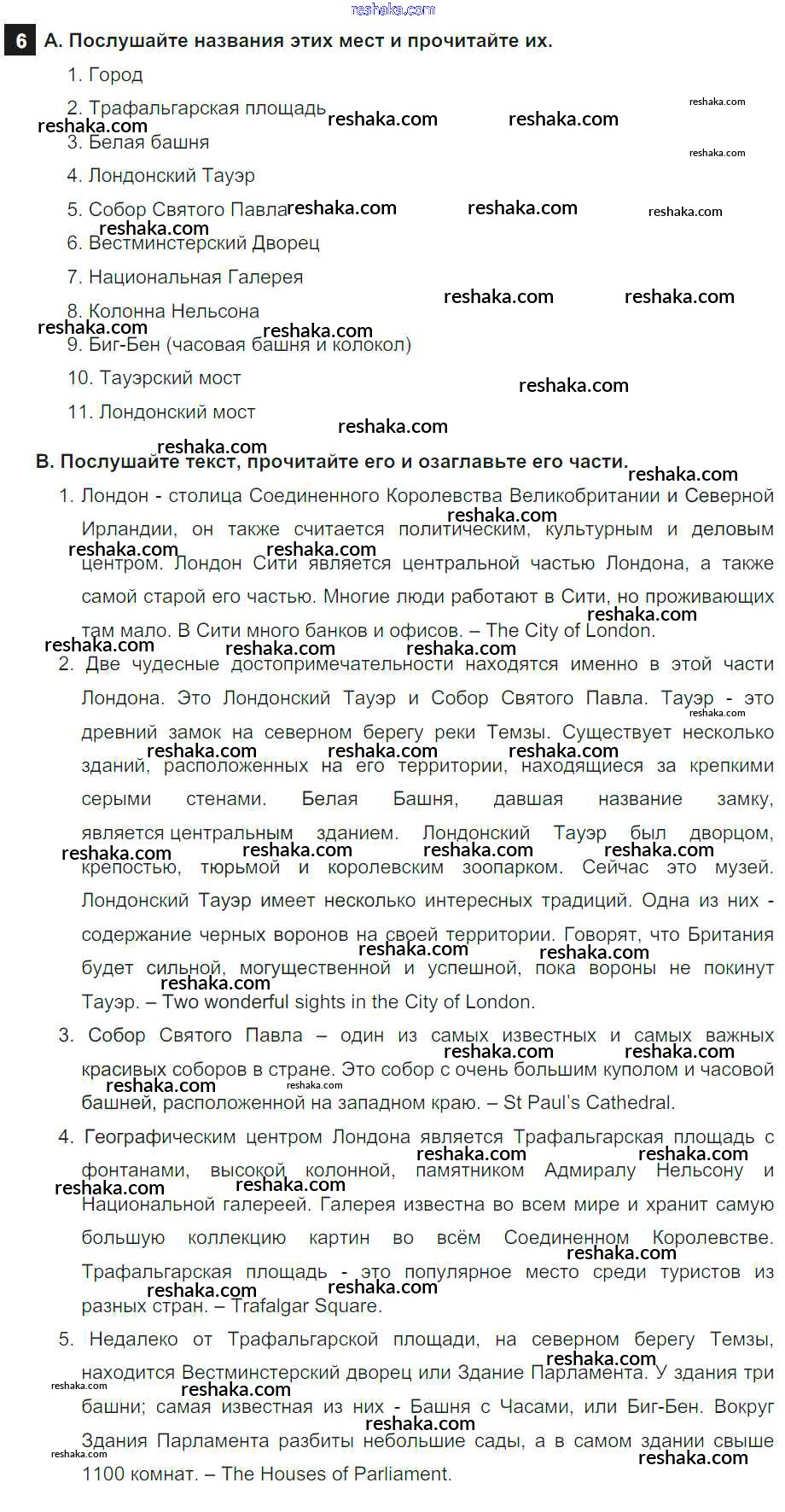 Решака - онлайн ответы Английский язык Афанасьева, Михеева за 6 класс Учебник ФГОС 2017 - 6