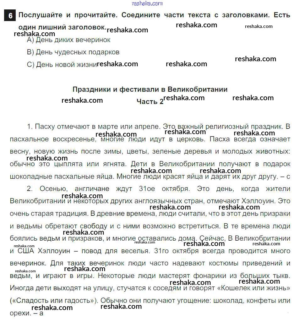 Решака - онлайн ответы Английский язык Афанасьева, Михеева за 6 класс Учебник ФГОС 2017 - 6