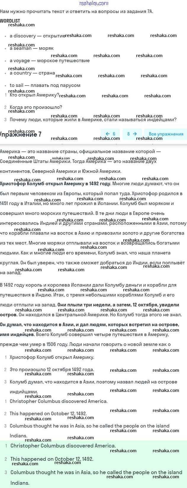 Решака - онлайн ответы Английский язык Афанасьева, Михеева за 6 класс Учебник ФГОС 2017 - 7