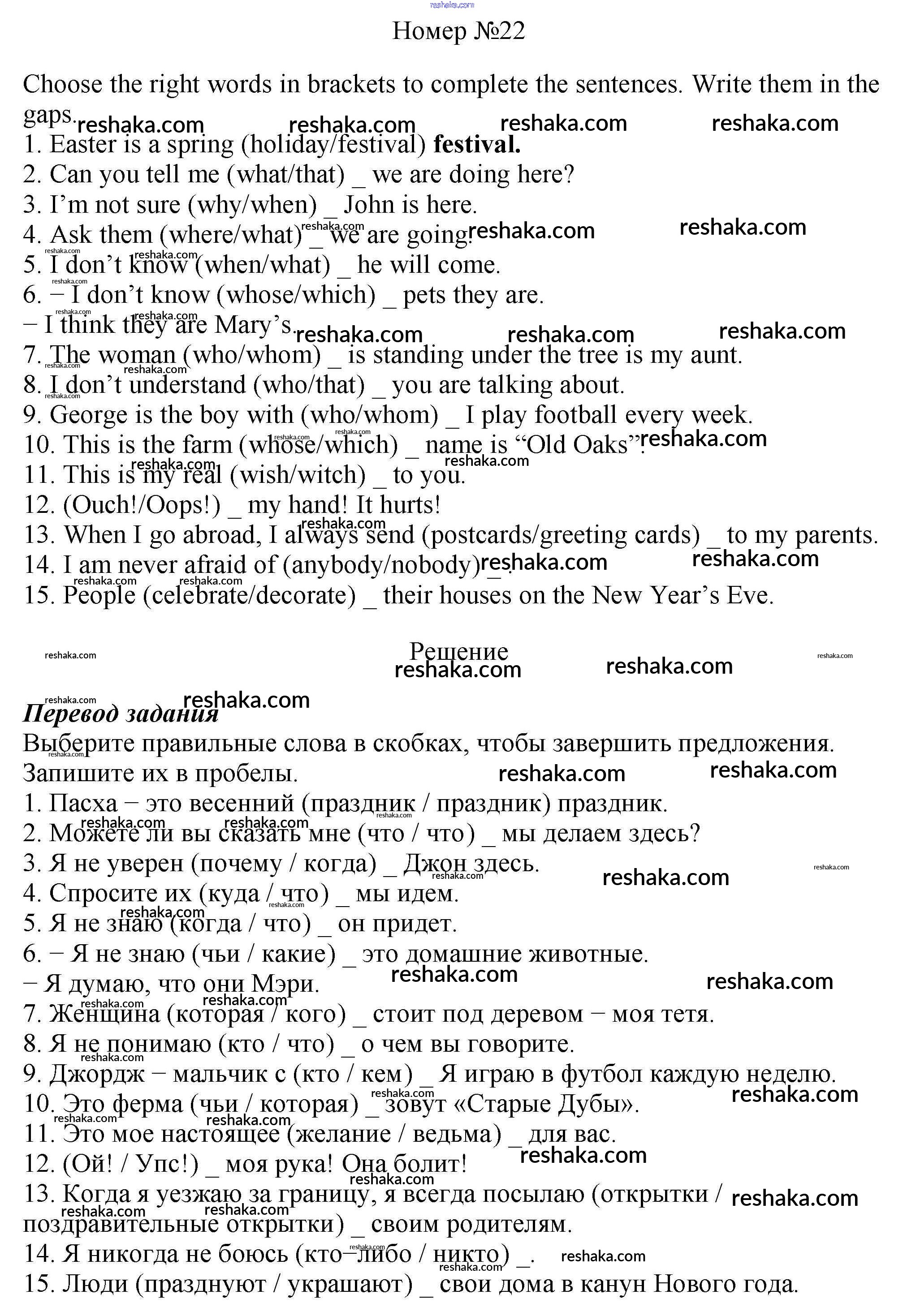 Решака - онлайн ответы Английский язык Афанасьева, Михеева за 6 класс Рабочая тетрадь ФГОС 2017 - 22