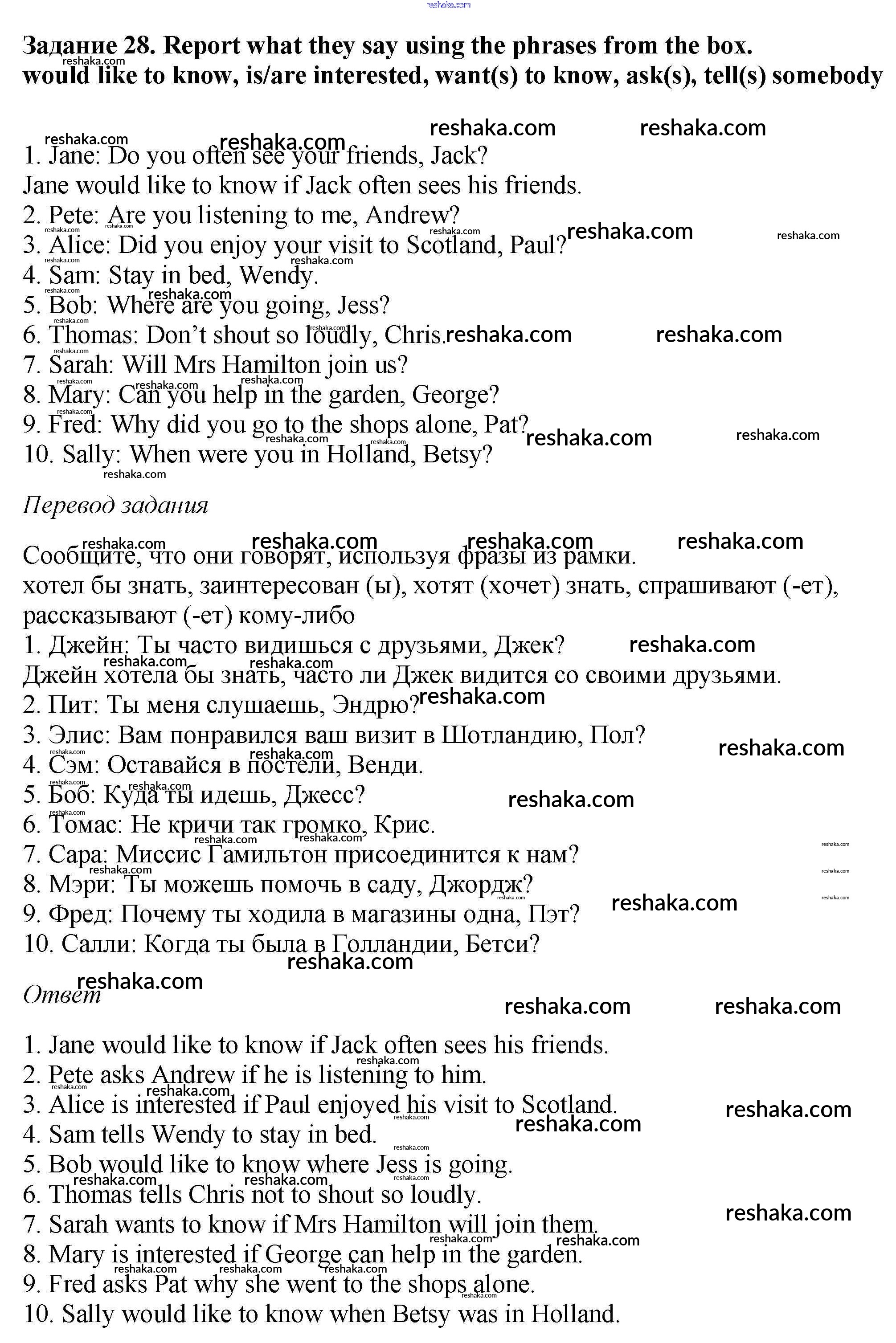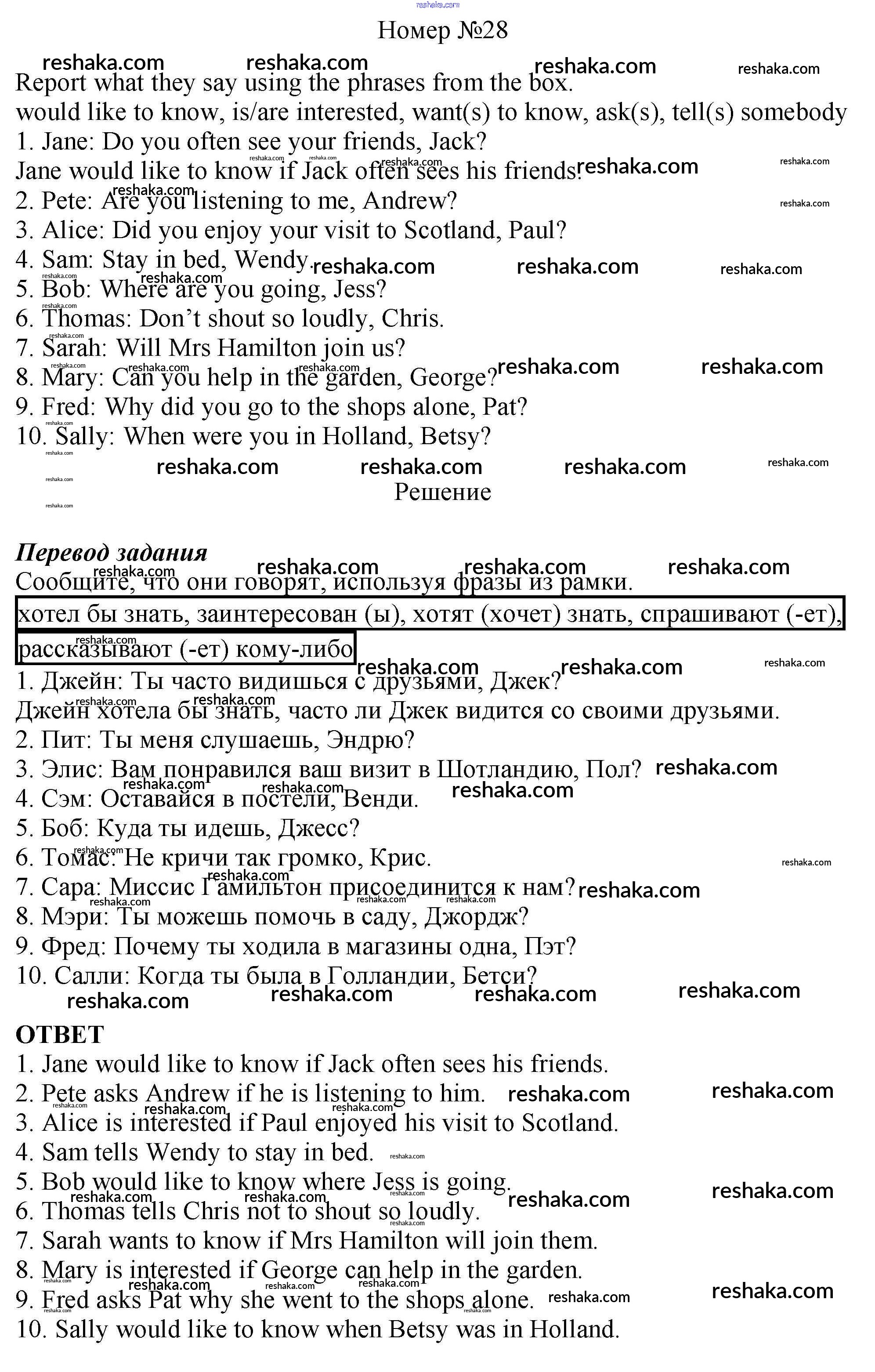 Решака - онлайн ответы Английский язык Афанасьева, Михеева за 6 класс Рабочая тетрадь ФГОС 2017 - 28