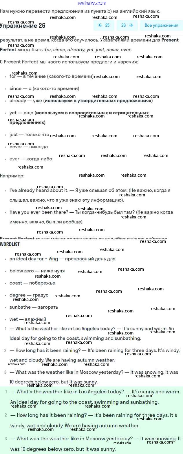 Представляем вам сборники по Английскому языку, с готовыми ответами к Учебнику Афанасьева школьной программы для учеников шестой класса. Это не просто гдз с ответом, а с подсказками, как верно решить Unit 2. Climate Часть 1 26. Проверяй домашку с умом и получай высший балл!