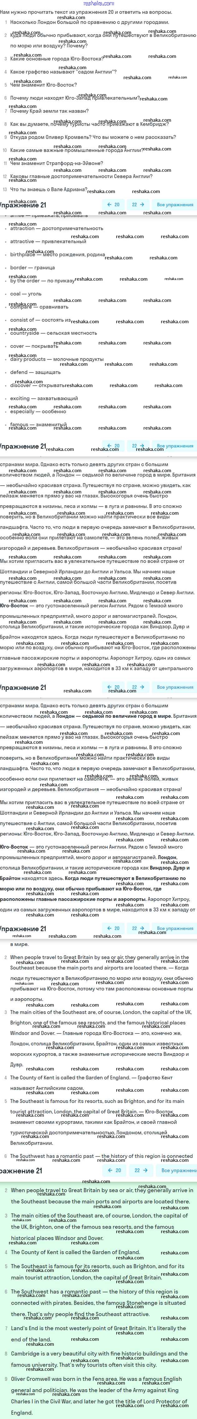 Представляем вам сборники по Английскому языку, с готовыми ответами к Учебнику Афанасьева школьной программы для учеников шестой класса. Это не просто гдз с ответом, а с подсказками, как верно решить Unit 8. England Часть 1 21. Проверяй домашку с умом и получай высший балл!