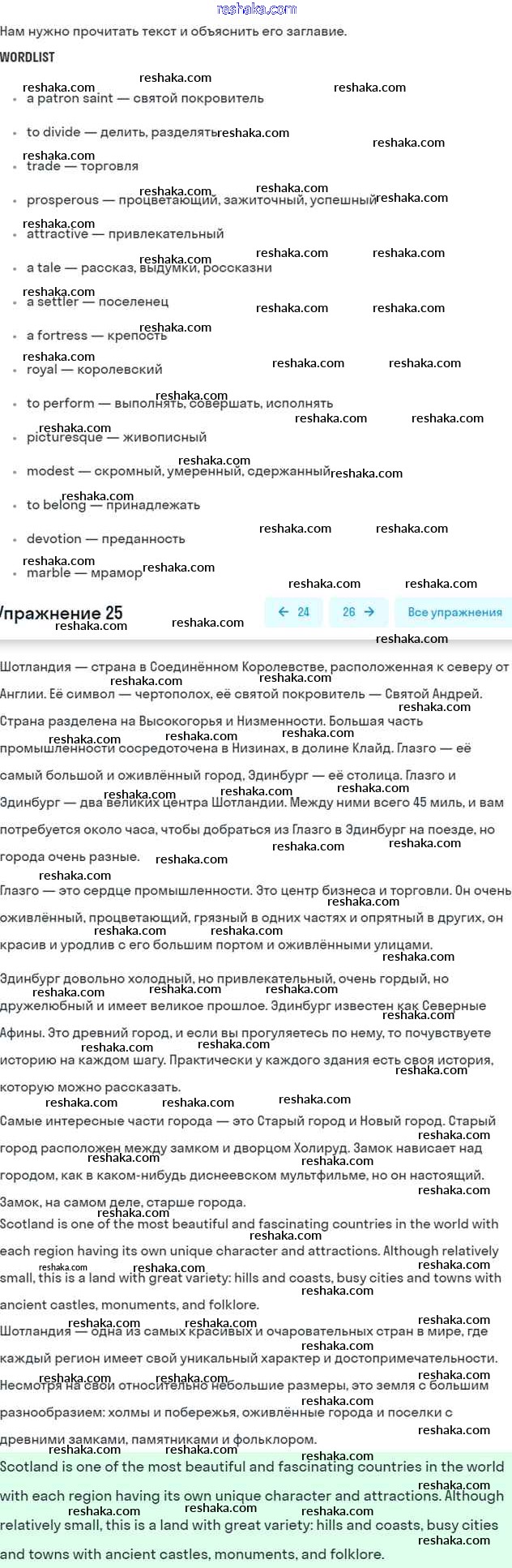 Представляем вам сборники по Английскому языку, с готовыми ответами к Учебнику Афанасьева школьной программы для учеников шестой класса. Это не просто гдз с ответом, а с подсказками, как верно решить Unit 13. Scotland Часть 2 25. Проверяй домашку с умом и получай высший балл!