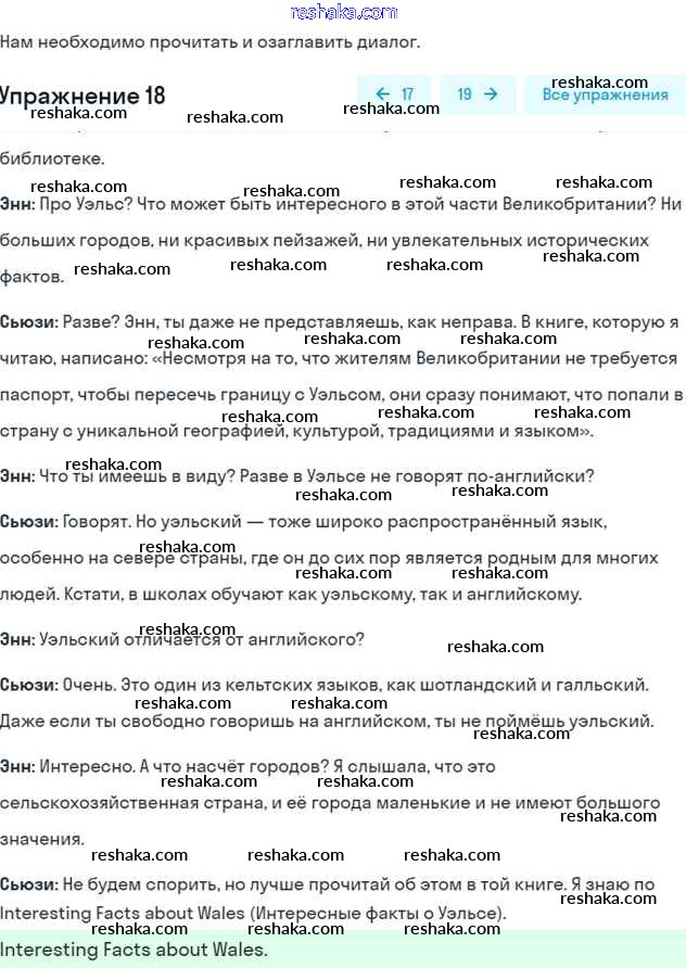 Представляем вам сборники по Английскому языку, с готовыми ответами к Учебнику Афанасьева школьной программы для учеников шестой класса. Это не просто гдз с ответом, а с подсказками, как верно решить Unit 14. Wales Часть 2 18. Проверяй домашку с умом и получай высший балл!