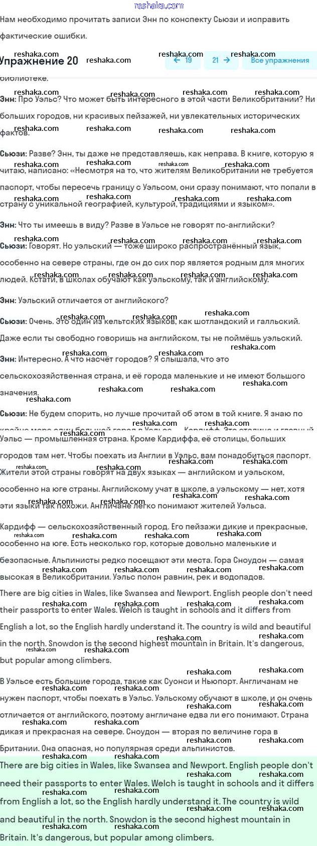 Представляем вам сборники по Английскому языку, с готовыми ответами к Учебнику Афанасьева школьной программы для учеников шестой класса. Это не просто гдз с ответом, а с подсказками, как верно решить Unit 14. Wales Часть 2 20. Проверяй домашку с умом и получай высший балл!