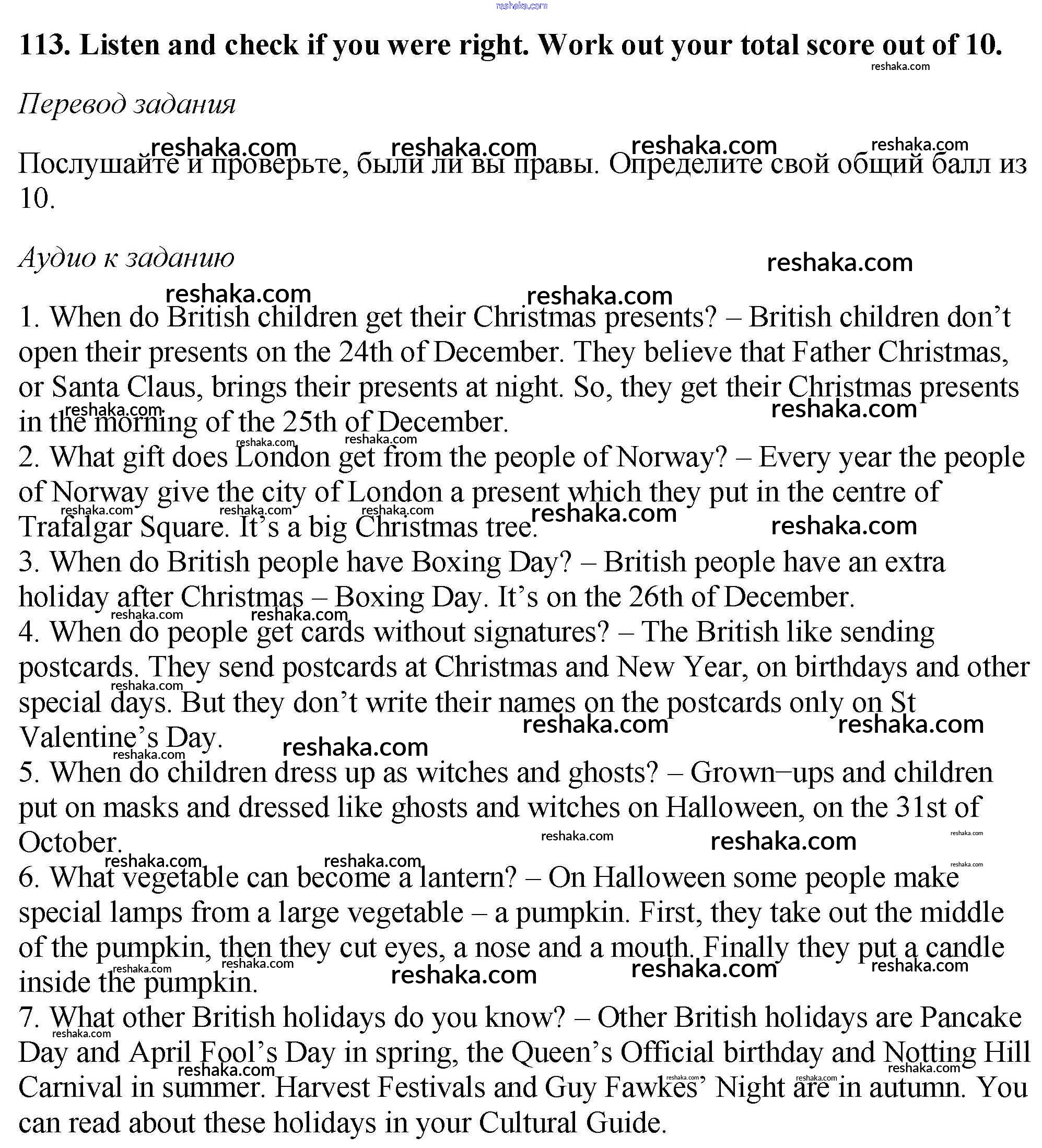 Решака - онлайн ответы Английский язык Биболетова, Денисенко за 6 класс Учебник ФГОС 2015 - 113