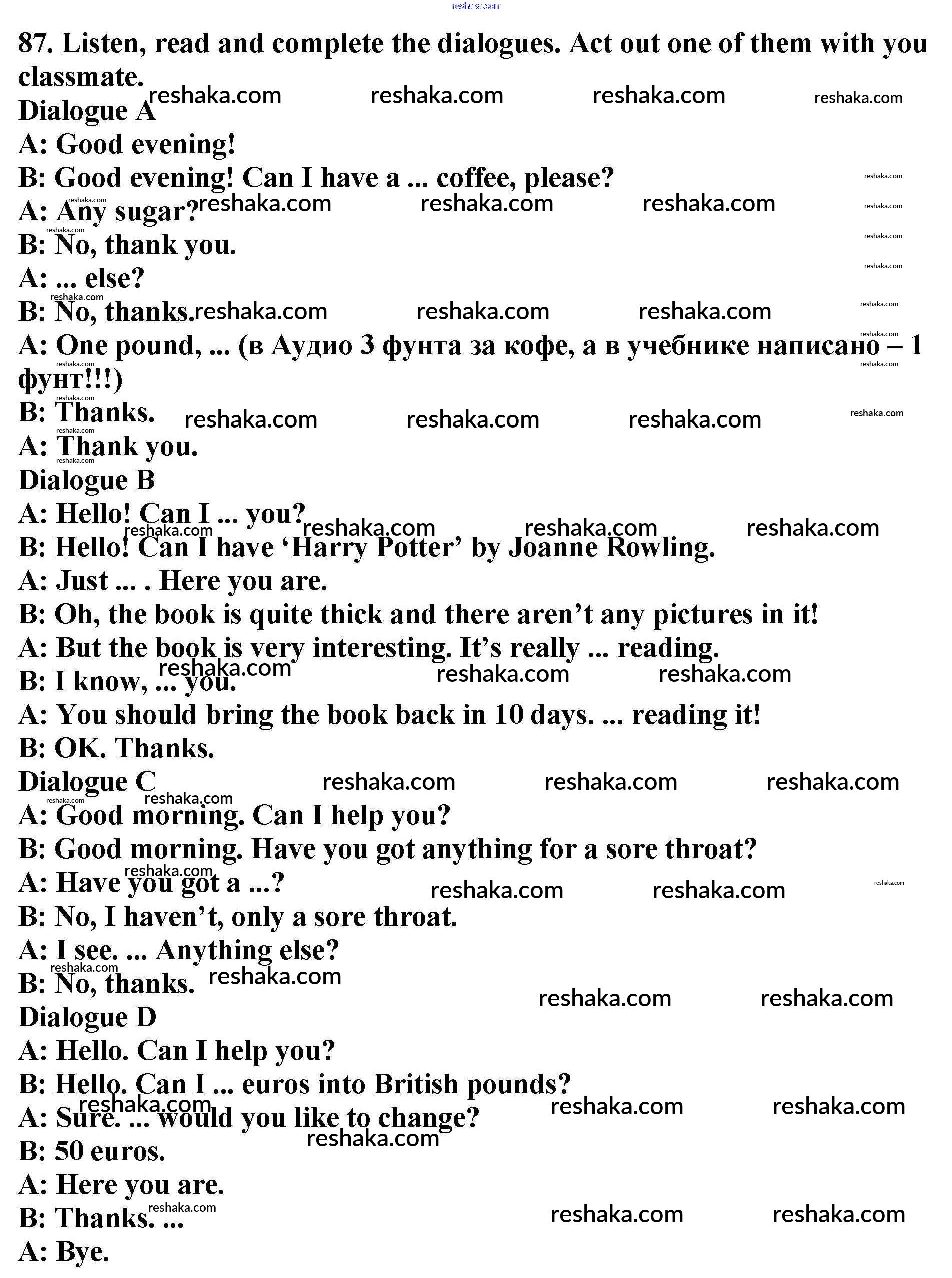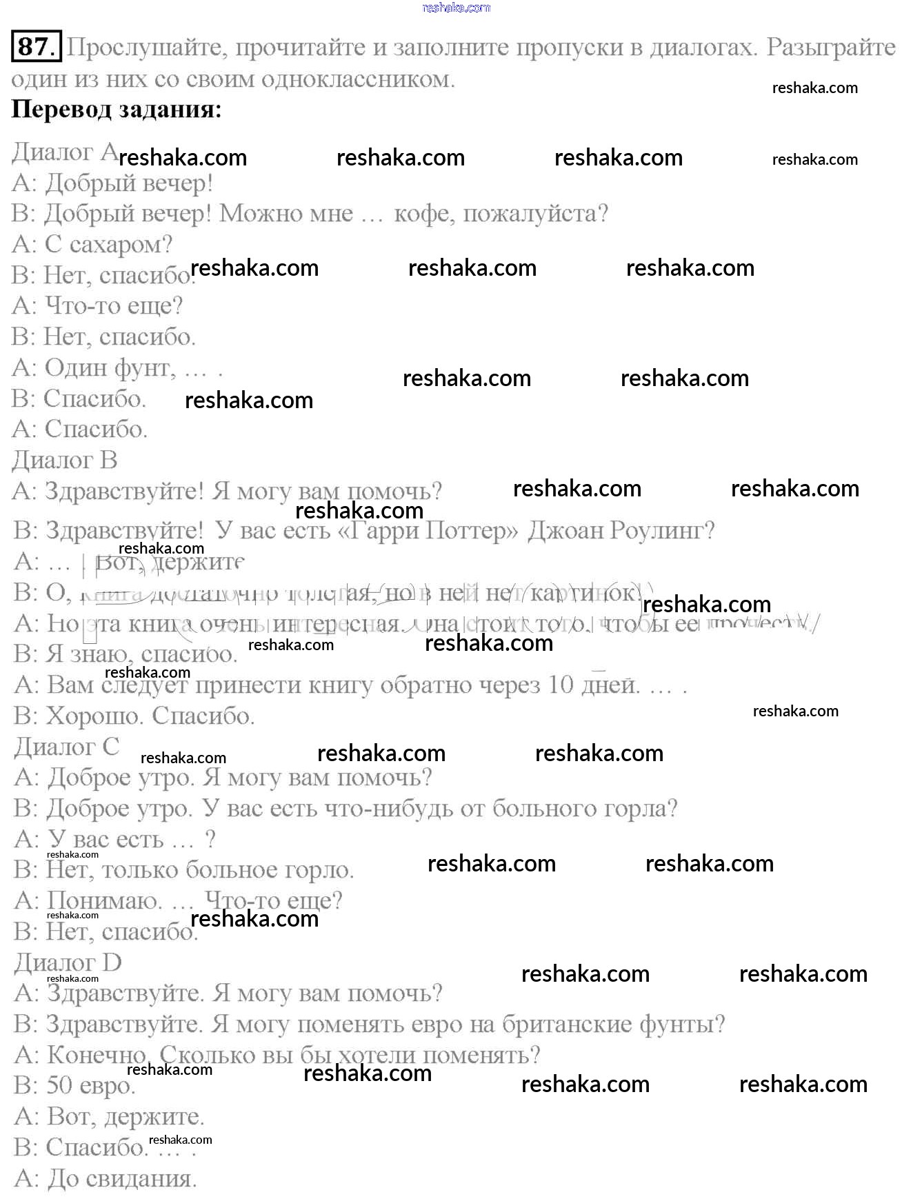 Решака - онлайн ответы Английский язык Биболетова, Денисенко за 6 класс Учебник ФГОС 2015 - 87