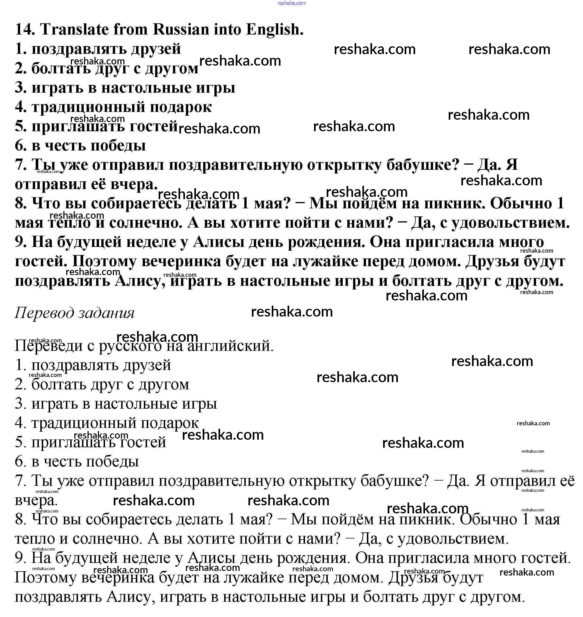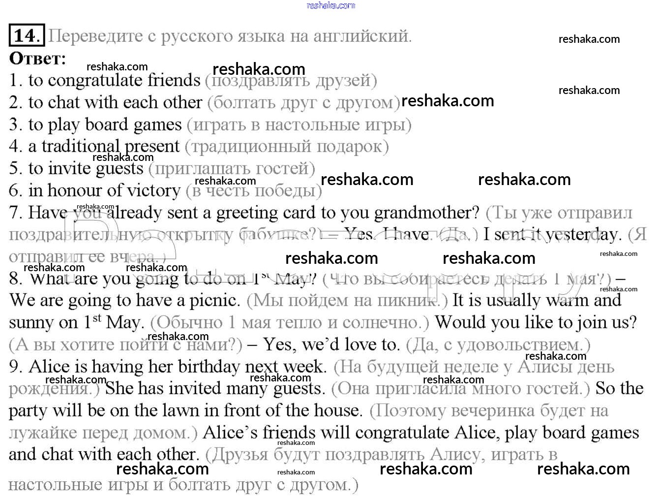 Решака - онлайн ответы Английский язык Биболетова, Денисенко за 6 класс Учебник ФГОС 2015 - 14