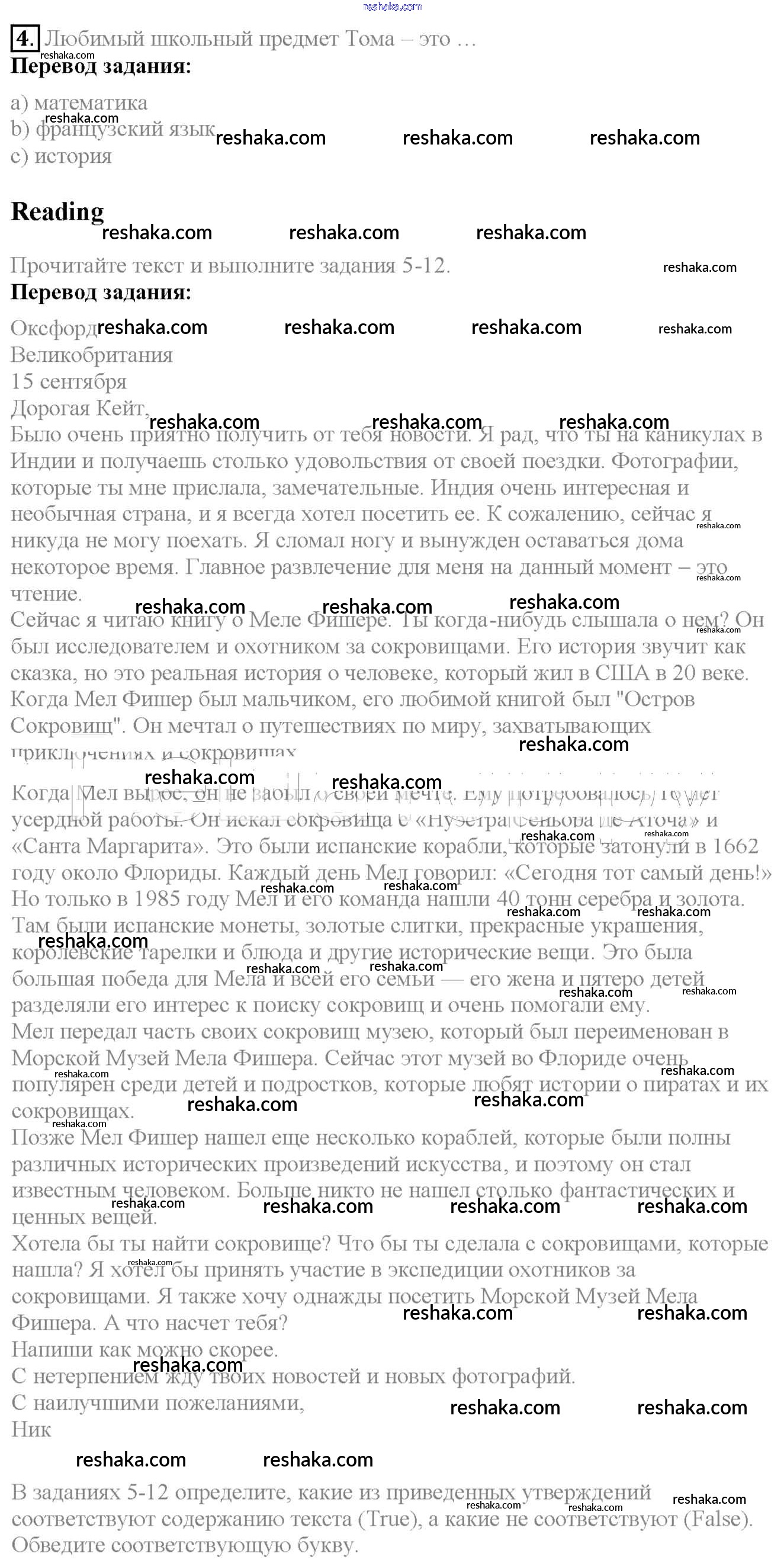 Решака - онлайн ответы Английский язык Биболетова, Денисенко за 6 класс Учебник ФГОС 2015 - 4